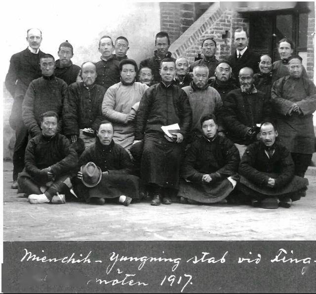 1917年,在丁李(音译)处举行集会的永宁渑池两地传教工作人员(瑞典文)