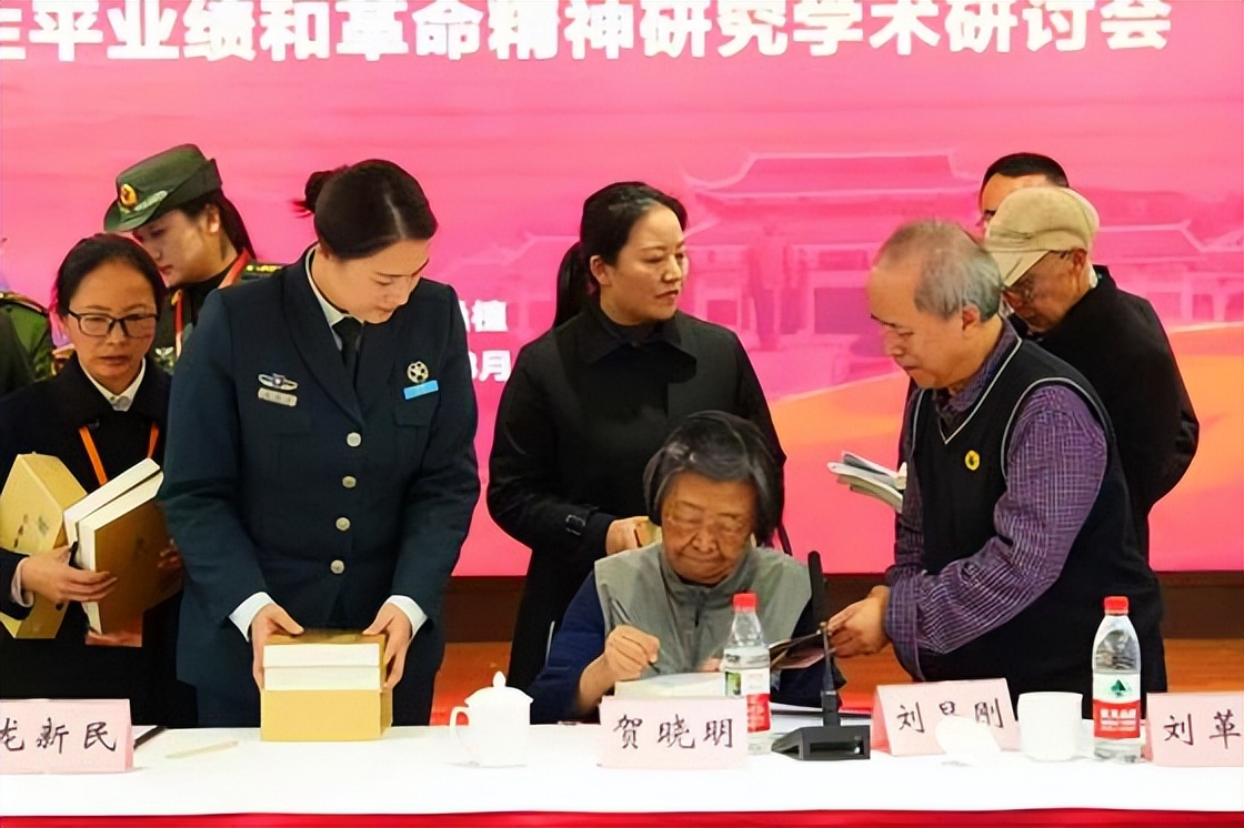 陈龙狮请贺龙元帅之女贺晓明在《贺龙年谱》(上下册)上签字留念(雯雯摄)