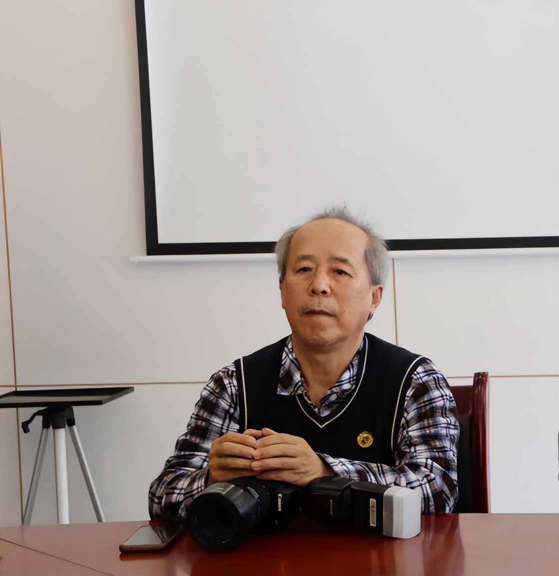 陈龙狮在烈士陵园座谈会上认真聆听众嘉宾的演讲(杨红摄)
