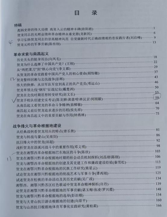 贺龙同志生平业绩和革命精神研究学术研讨会论文集目录:特稿、革命求索与南昌起义、战争烽火与革命根据地建设、军事思想与体育思想、精神风范与时代价值、与老一辈革命家及其它(陈龙狮摄)