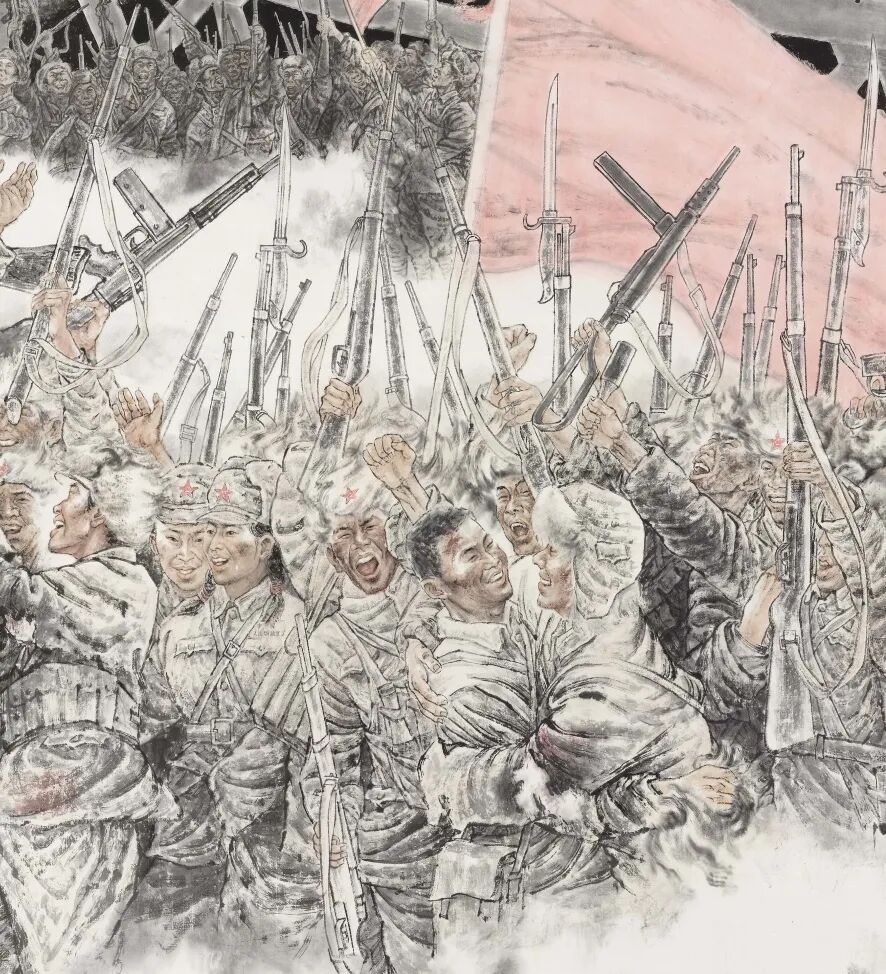 8. 艺术生涯硕果累累,作品连续入选第八、九、十、十二届全国美展,多次亮相全军美展、全国工笔画展等国家级重磅展览,斩获多项艺术大奖。《解放天津一一会师金汤桥》在中央总台“美术经典中的党史”百幅经典作品节目中播放,并被列为《央视科教》《学习强国》等学习平台的视频教材。