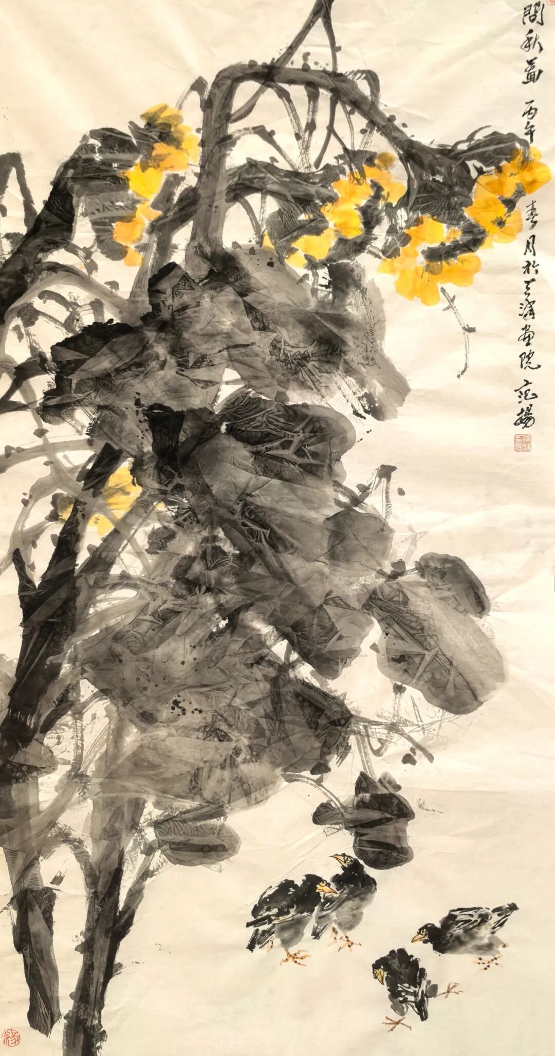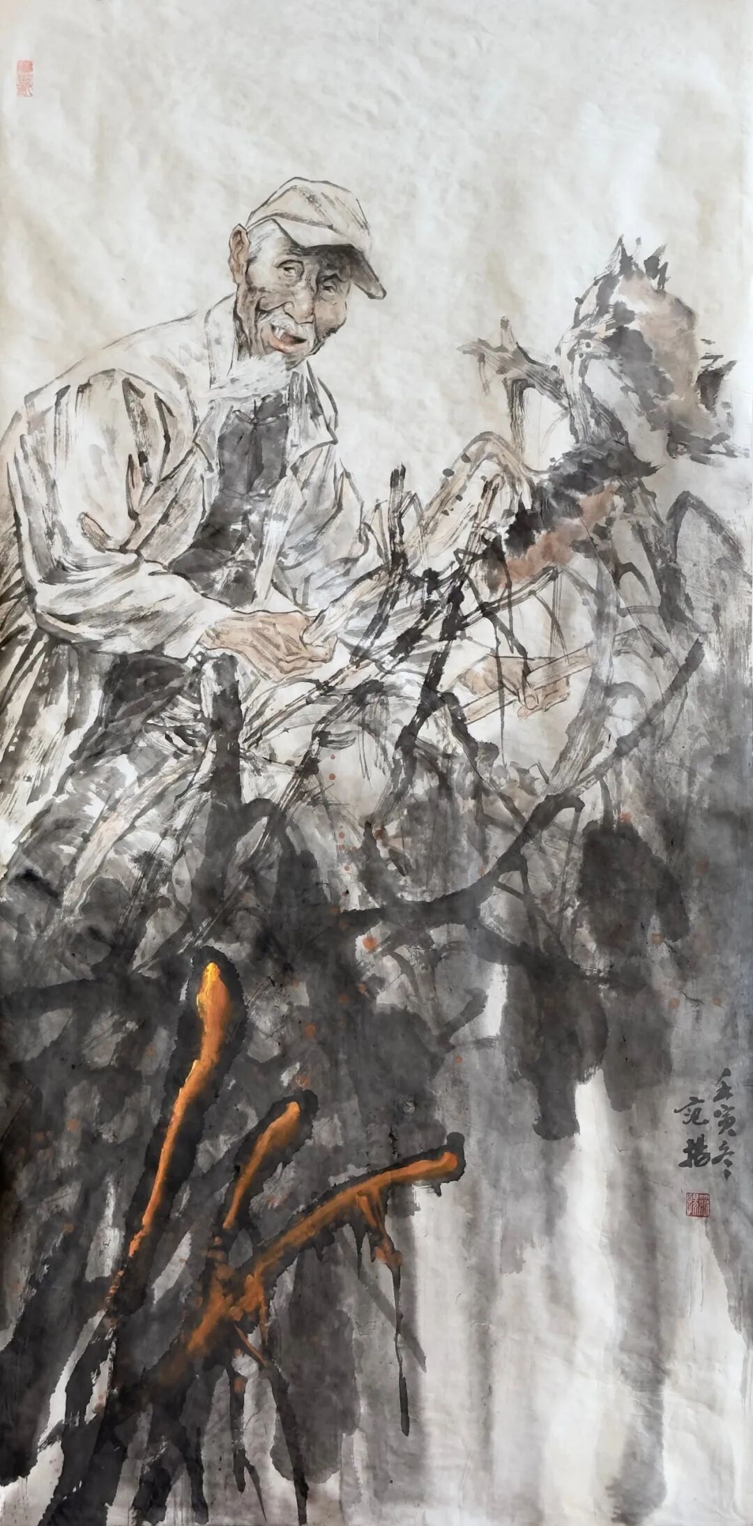 16. 他的作品始终紧扣时代脉搏,以笔墨记录时代变迁,以丹青抒写家国情怀,用艺术作品传递正能量,彰显当代画家的文化担当与使命。