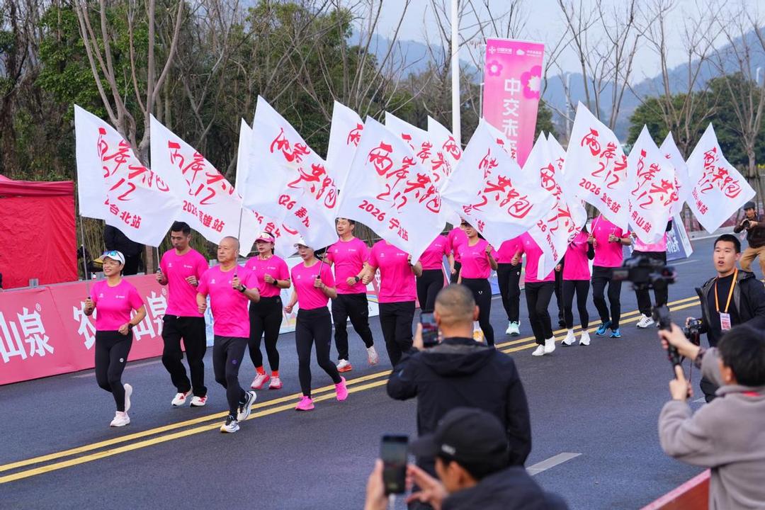 作为奉化桃花马拉松的预热,欢喜雪窦山·2026海峡两岸(宁波)乐跑嘉年华在奉马前一日鸣笛起跑。5000名来自海峡两岸的跑友齐聚一堂,在全程5.8公里的春日奔跑派对上,用脚步丈量山水,用欢笑点燃激情,在春日烂漫中感受奔跑的魅力。