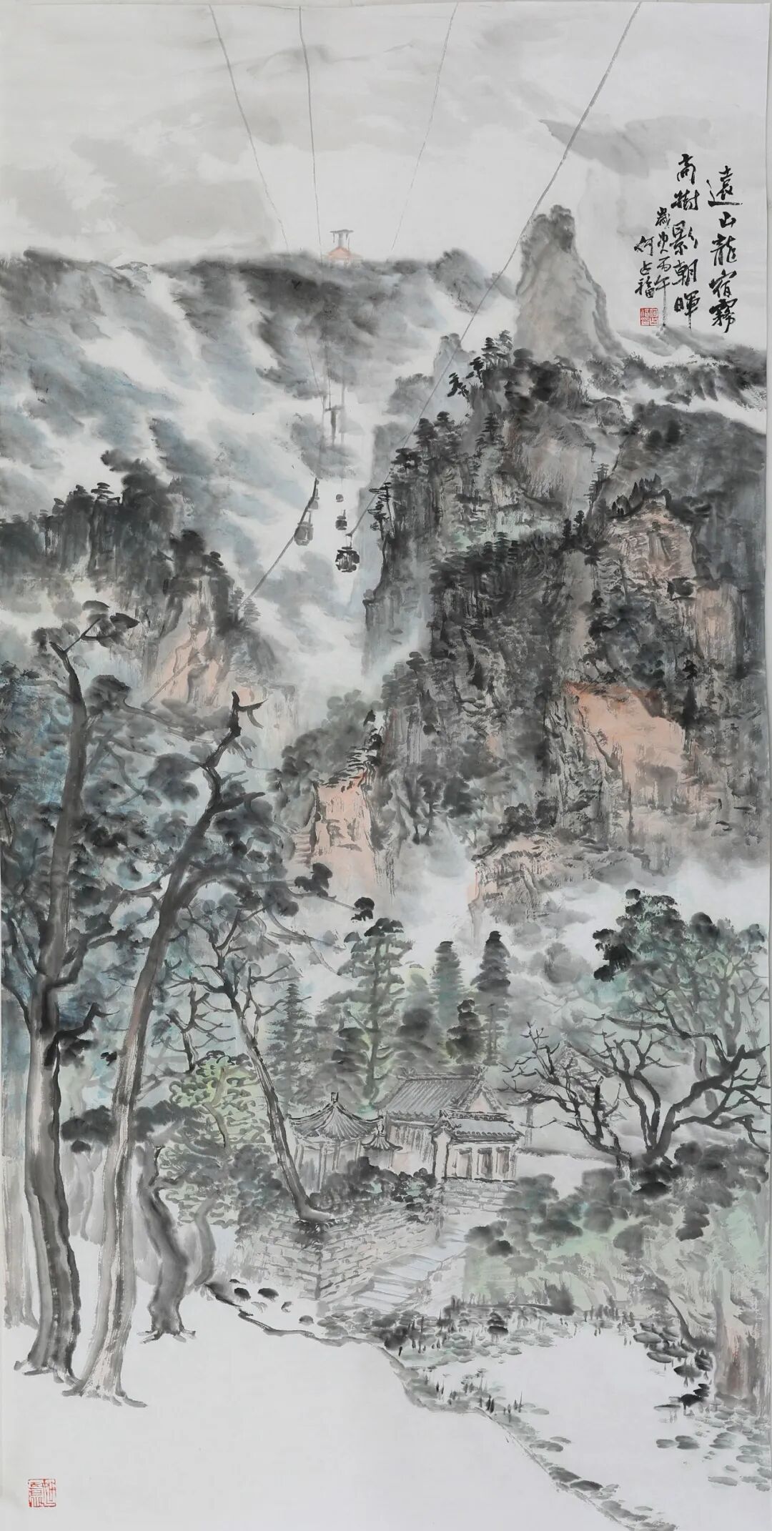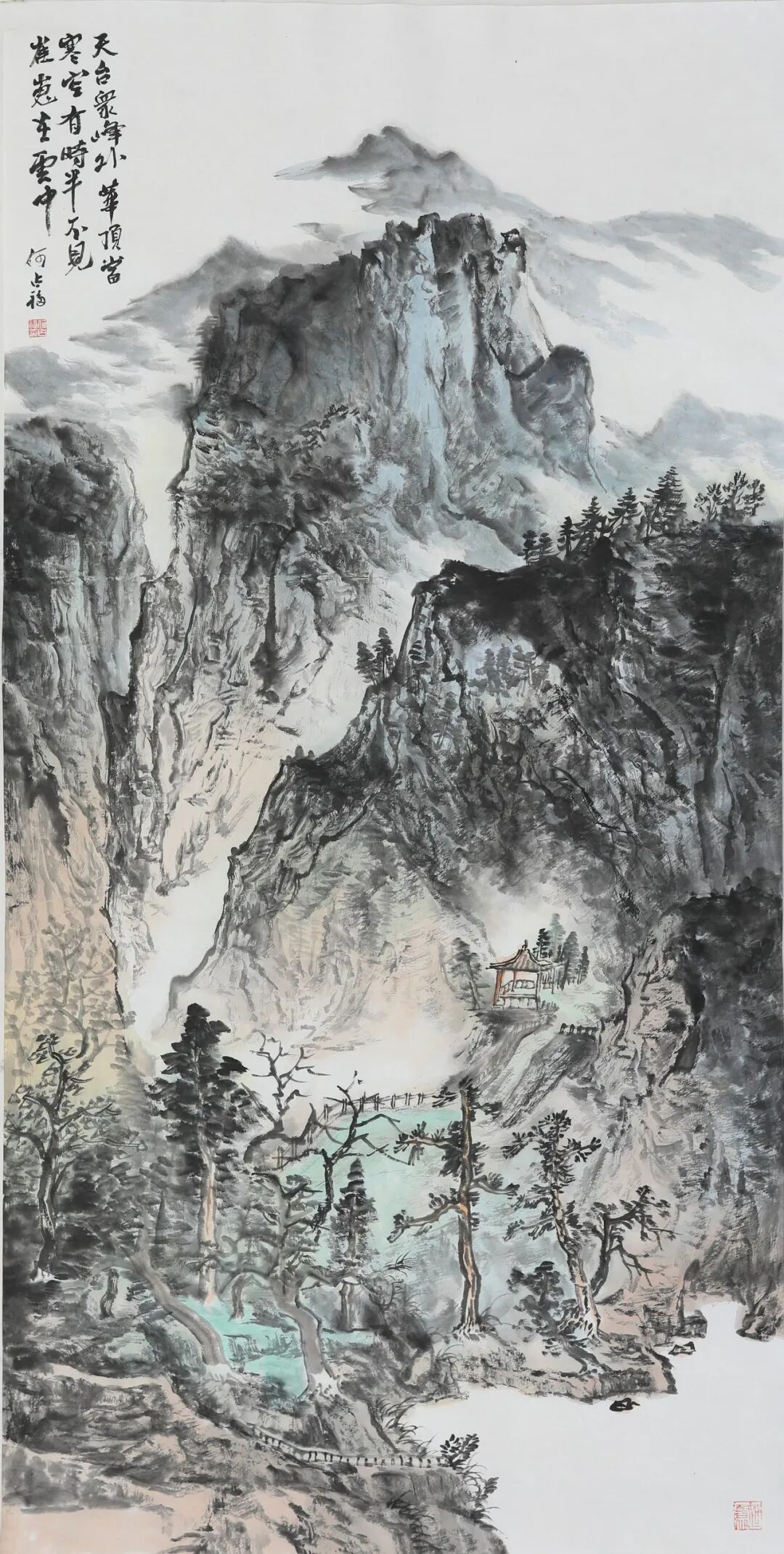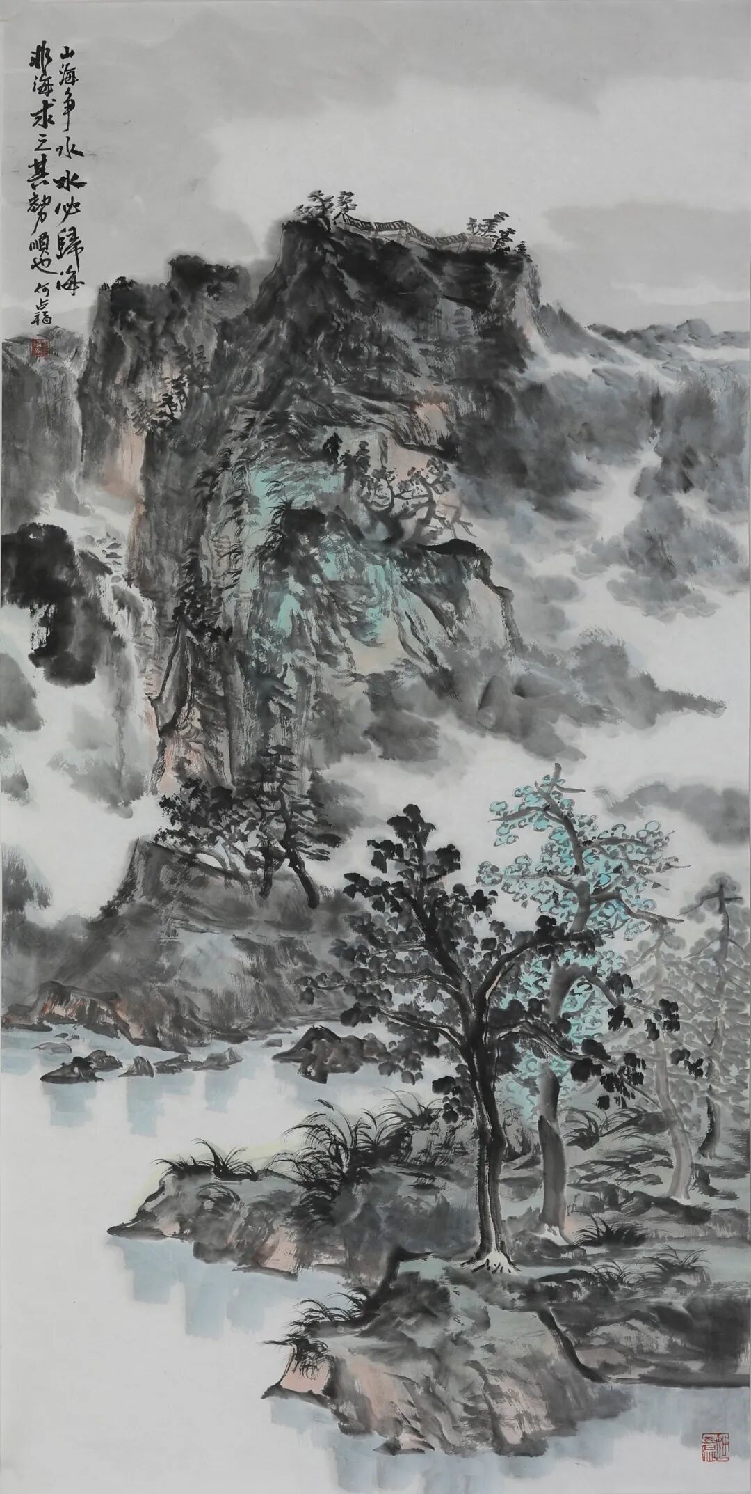我记得他曾对我说:“一个连自己都收拾不干净的人,画出来的画,气韵也是浑浊的。” 这句话不仅是他对生活的追求,更是他对艺术的态度。于是,他笔下的山河,无论格局多么宏阔,肌理总是清晰的,墨色总是朗润的,透着一股清刚正气。在他身上,你看不到艺术家常有的邋遢与不羁,他呈现给世界的,总是一种经过精心淬炼后的从容与优雅。这份外在的整洁与有序,内化到他的画作中,便形成了画面那种清透干净、一丝不苟的格调。他笔下的山水,雄浑磅礡中保持着一种内在的秩序与清澈的呼吸感。他的画案也经常是整齐有序,干净整洁。这些细小的仪式,都仿佛是在提醒自己要对得起每一张宣纸,对得起将要落下的每一笔墨。他让我能看到父亲的作画如修行,他笔下山水的清朗之气,正是源自这份日复一日的自我修炼。