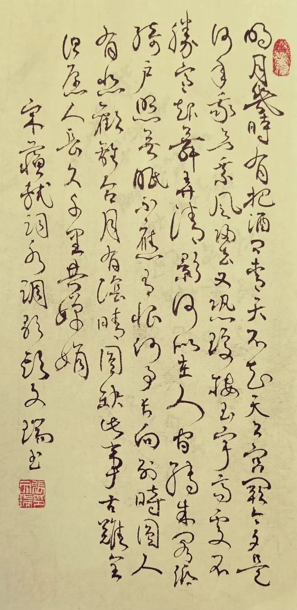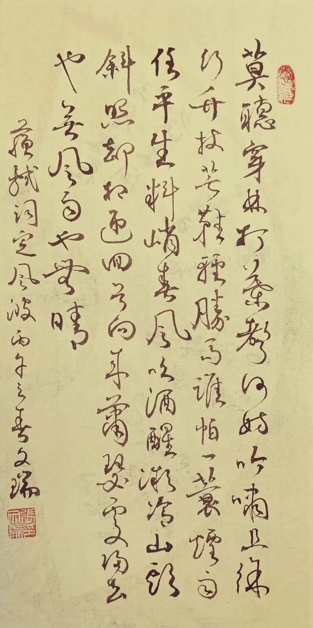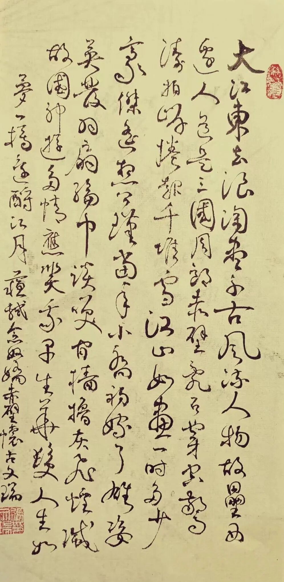说其点,如高山坠石、鲲鹏击水、长虹饮涧……, 皆不能言其真;说其线,似屋漏痕、似锥画沙、似折钗股……,也不能道其妙,因为,一切都在情理之中,又常常出于意料之外,在情理之中的是法度,意料之外则给人一种意想不到的惊奇,很别致、也很高级。显然,那是张文瑞的独特风格,有别于传统,更有别于今人。