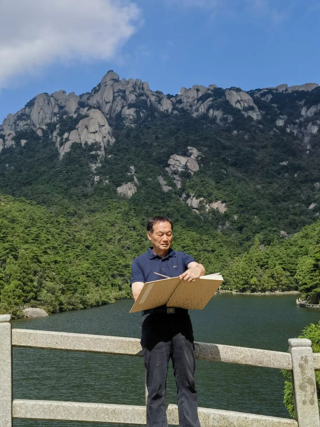 他彻底摒弃程式化创作套路,以赤子之心感悟自然本真,以传统笔墨凝练天柱山独有的精、气、神、韵,于方寸宣纸上重构这座皖山文化名山的完整生命气象,让千年山川风骨在当代笔墨中重焕生机。