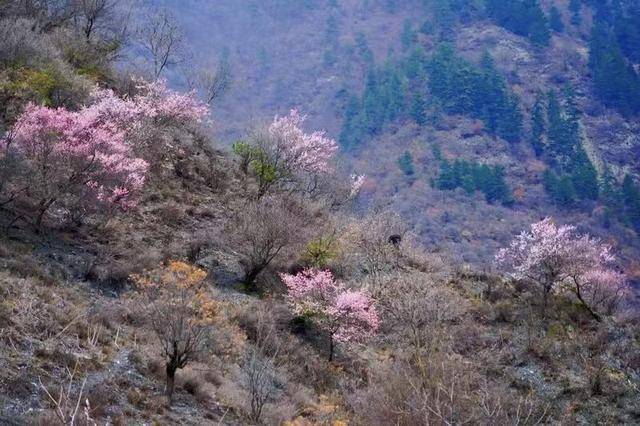 沿着蜿蜒的羊肠小道前行,春日的繁花次第绽放,把山林装点得温柔烂漫。早春的迎春花还留着最后一抹金黄,连翘已漫山遍野铺开,鎏金似的花海顺着山势起伏,风一吹,细碎的花瓣簌簌落下,铺成一条金色的小径。