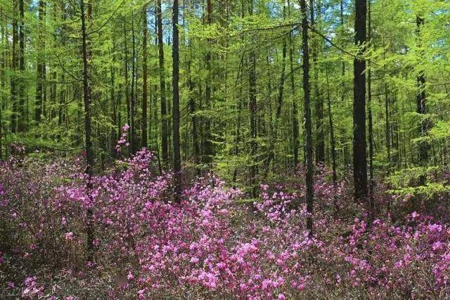 夕阳西下时,游客们踏上归途。回望渐渐隐入暮色的林场,满树繁花与林海交织成一幅动人的春日画卷。