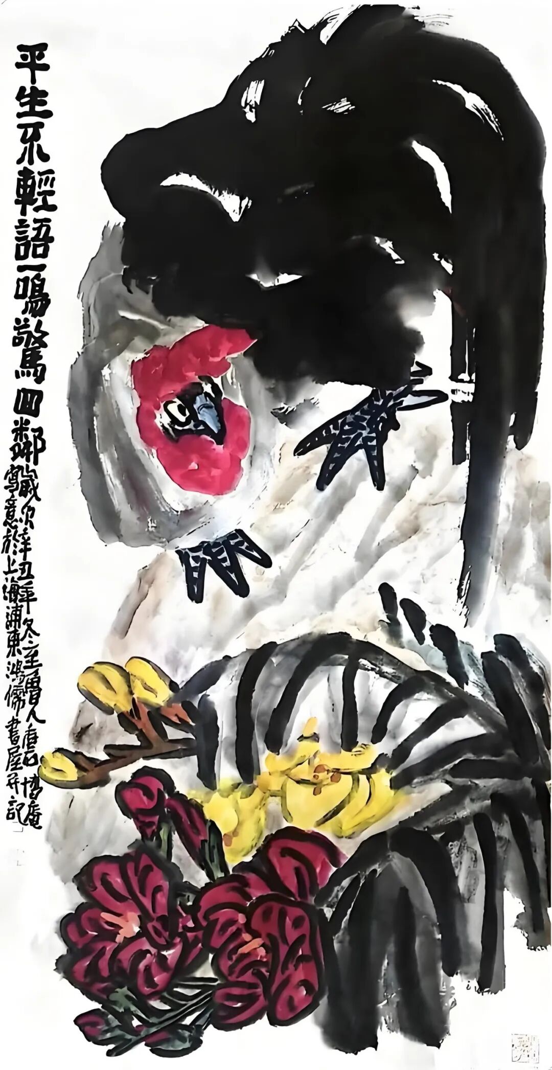 在当代大写意花鸟画坛,田博庵的绘画风格是一个独特现象。他的画不取悦人——不甜、不媚、不巧、不秀;他的画不讨好谁——不追时髦、不赶潮流、不凑热闹。在这个崇尚“视觉冲击”、追求“形式创新”的时代,他的画显得有些“笨”,有些“拙”,甚至有些“木讷”。但正是这种“笨拙木讷”,让他的画拥有了一种当代画坛少有的品质——真诚。