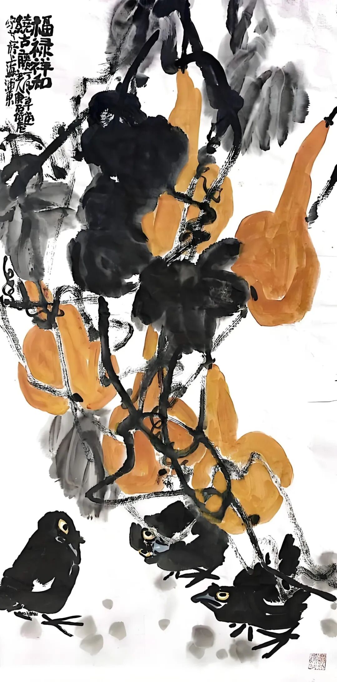 这些特质,不是他“学”来的,而是他“长”出来的。他呼吸的空气、踩过的土地、见过的民风、吃过的饭食,无一不是这种文化的载体。乡土文化给予他的,不是具体的绘画题材,而是一种看世界的眼光——用朴拙的眼光看万物,万物都褪去浮华,露出本真的筋骨。