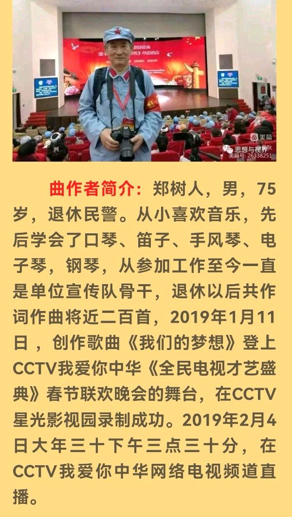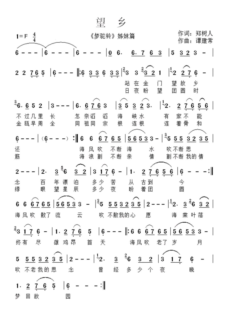 发布后,读者的热烈回响令我久久难以平静。经过多次的酝酿修改,我以《梦驼铃》原曲为基础,完成了其姊妹篇《望乡》的创作。这首歌延续了相同的旋律,表达了海峡两岸人民渴望团圆、期盼统一的深切心愿。现由著名歌手毛辛老师演唱,敬请欣赏。