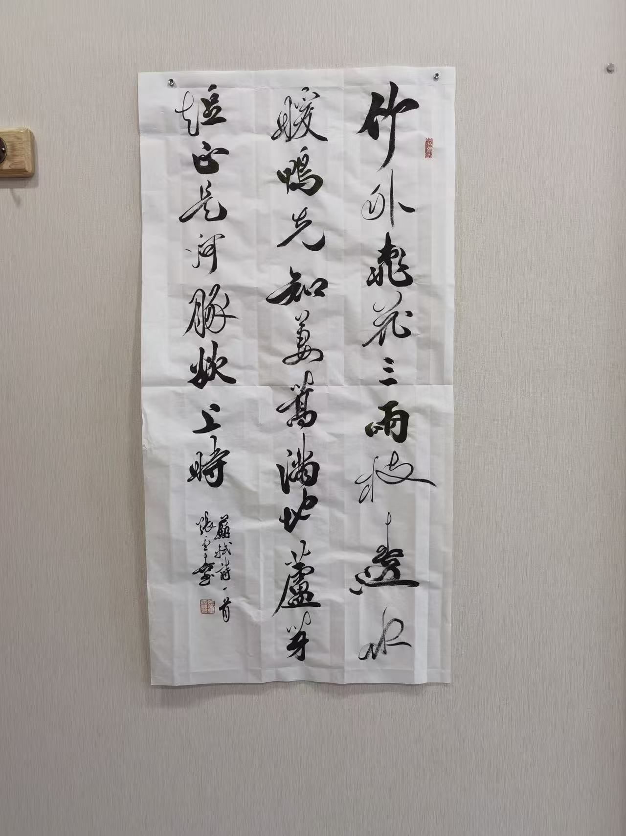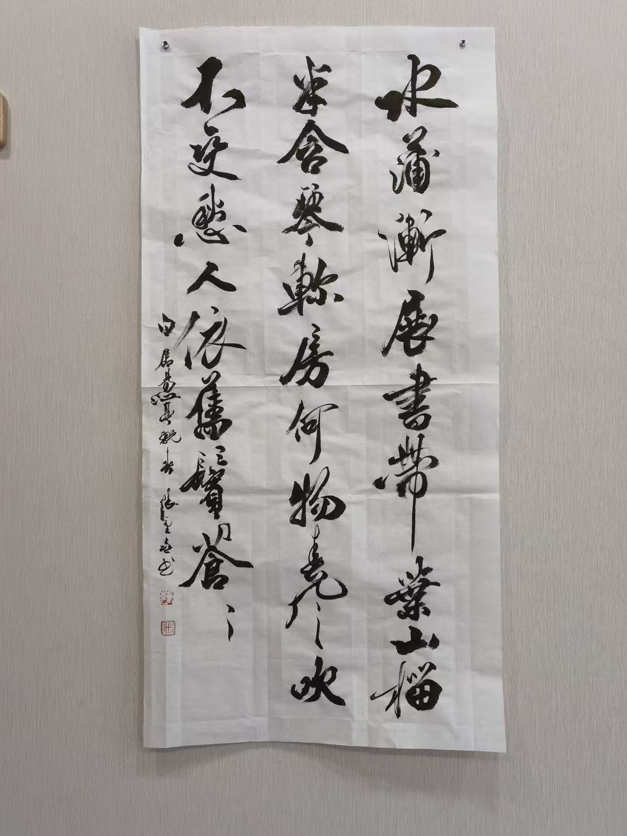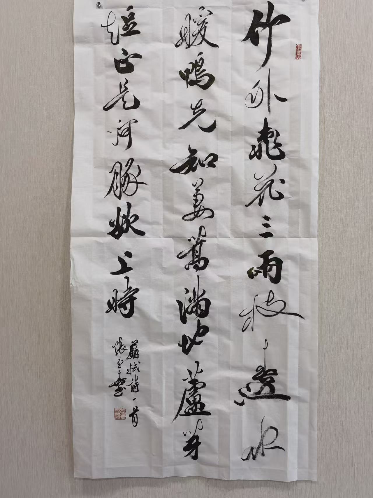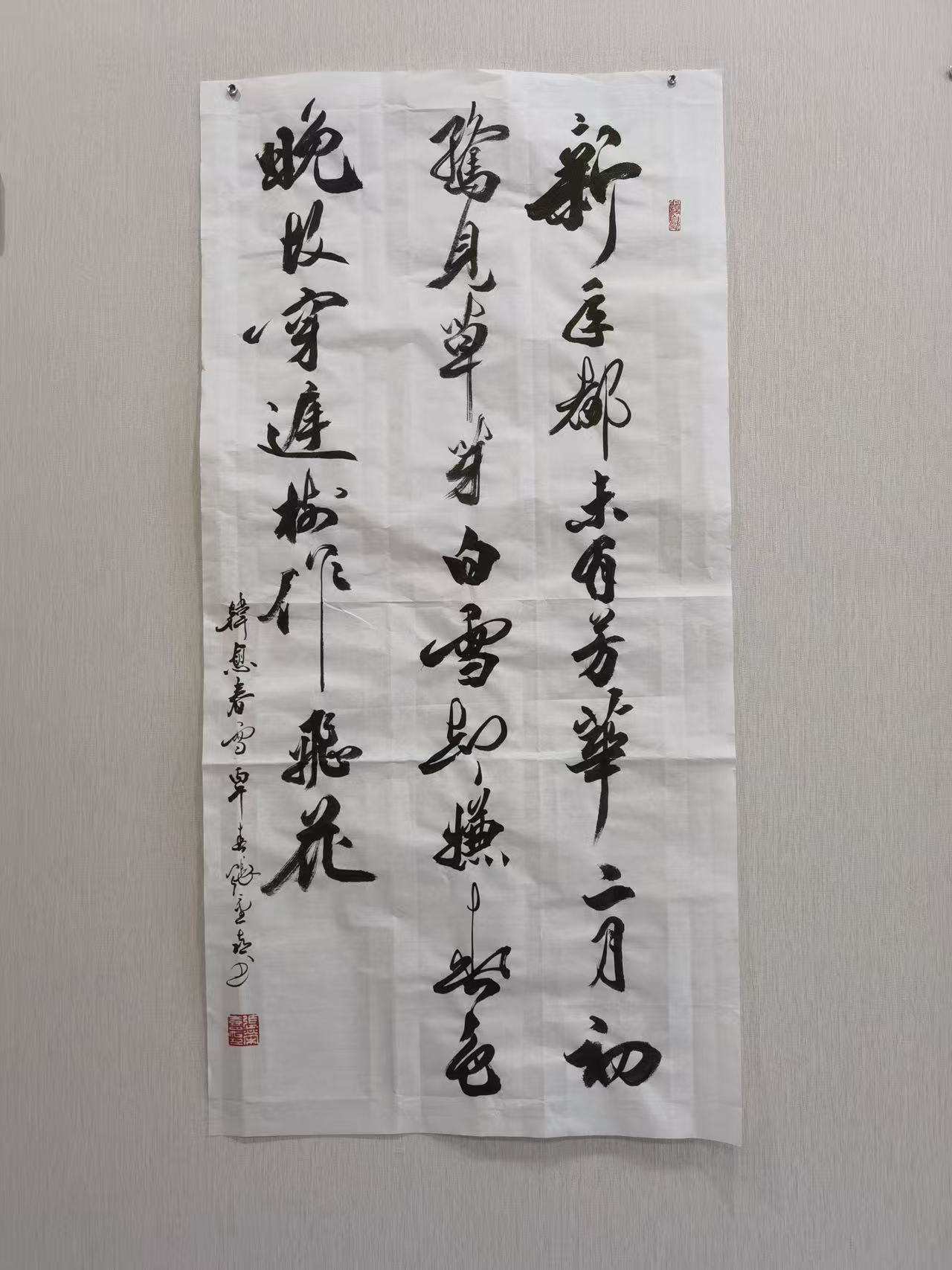 此外,张重喜还注重章法留白的创新,他遵循“计白当黑”的传统美学理念,将留白作为章法布局的重要组成部分,留白处或大或小、或疏或密,恰到好处,既增强了作品的层次感与空间感,又营造出空灵悠远、含蓄内敛的意境,让作品“言有尽而意无穷”,给观者留下丰富的想象空间。