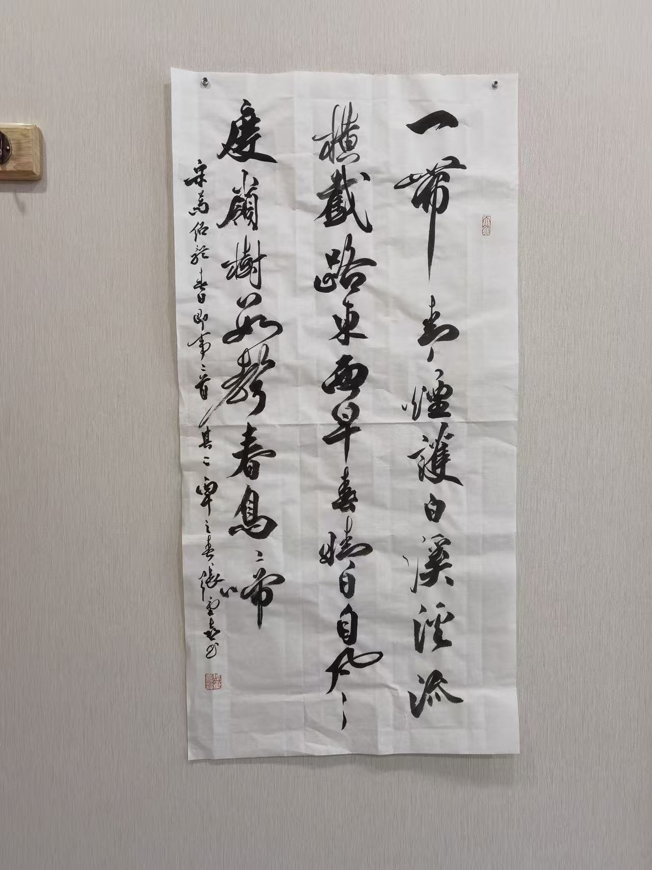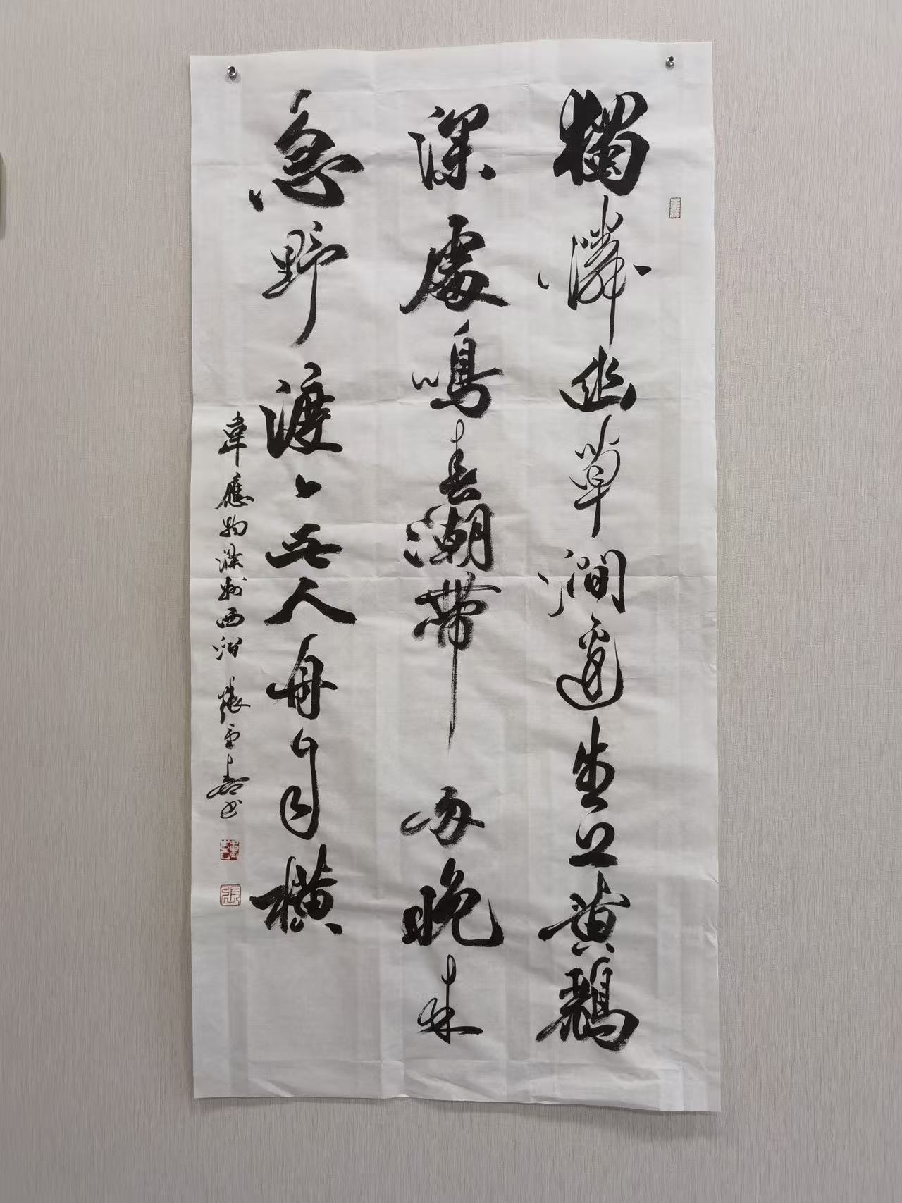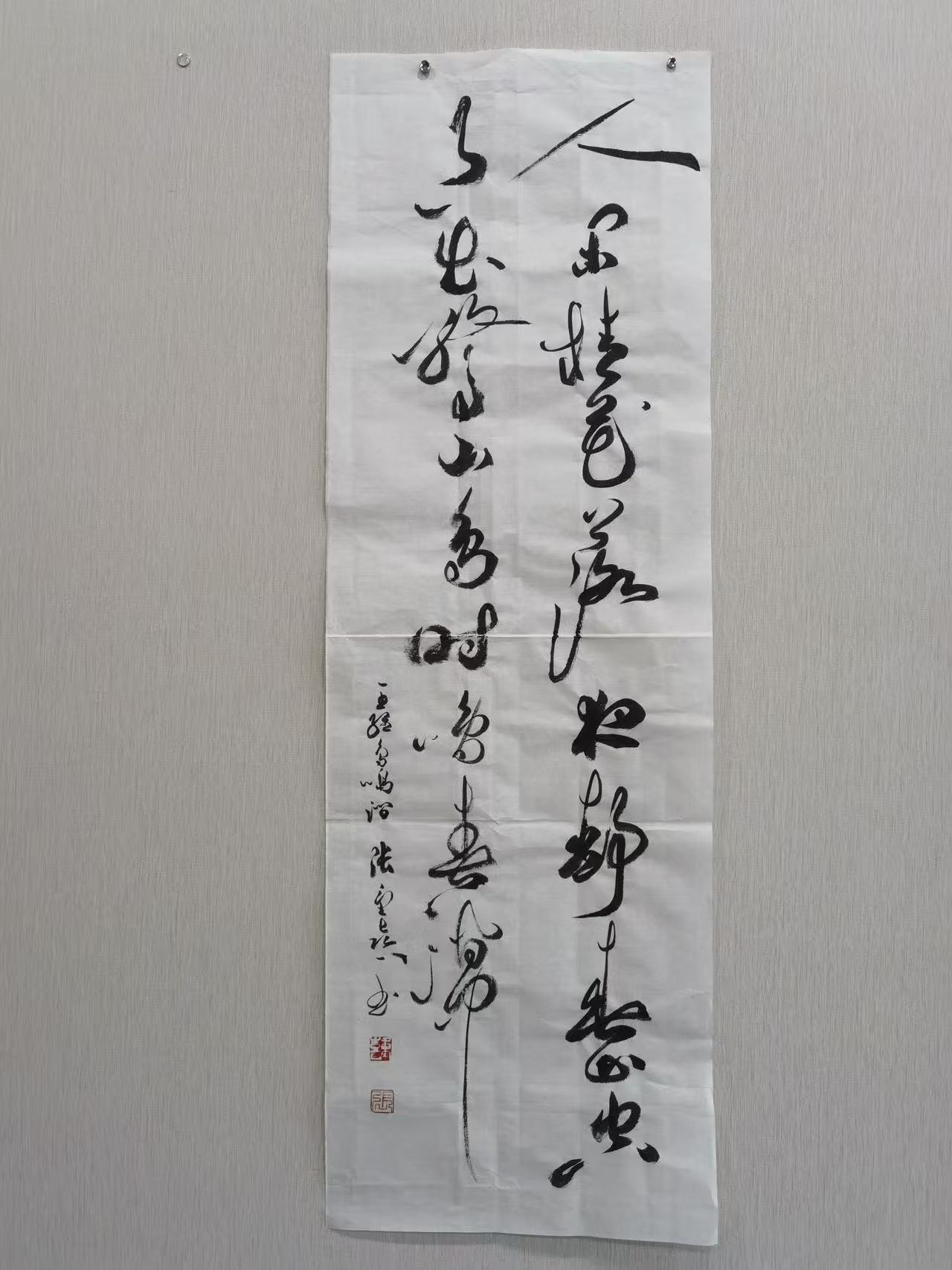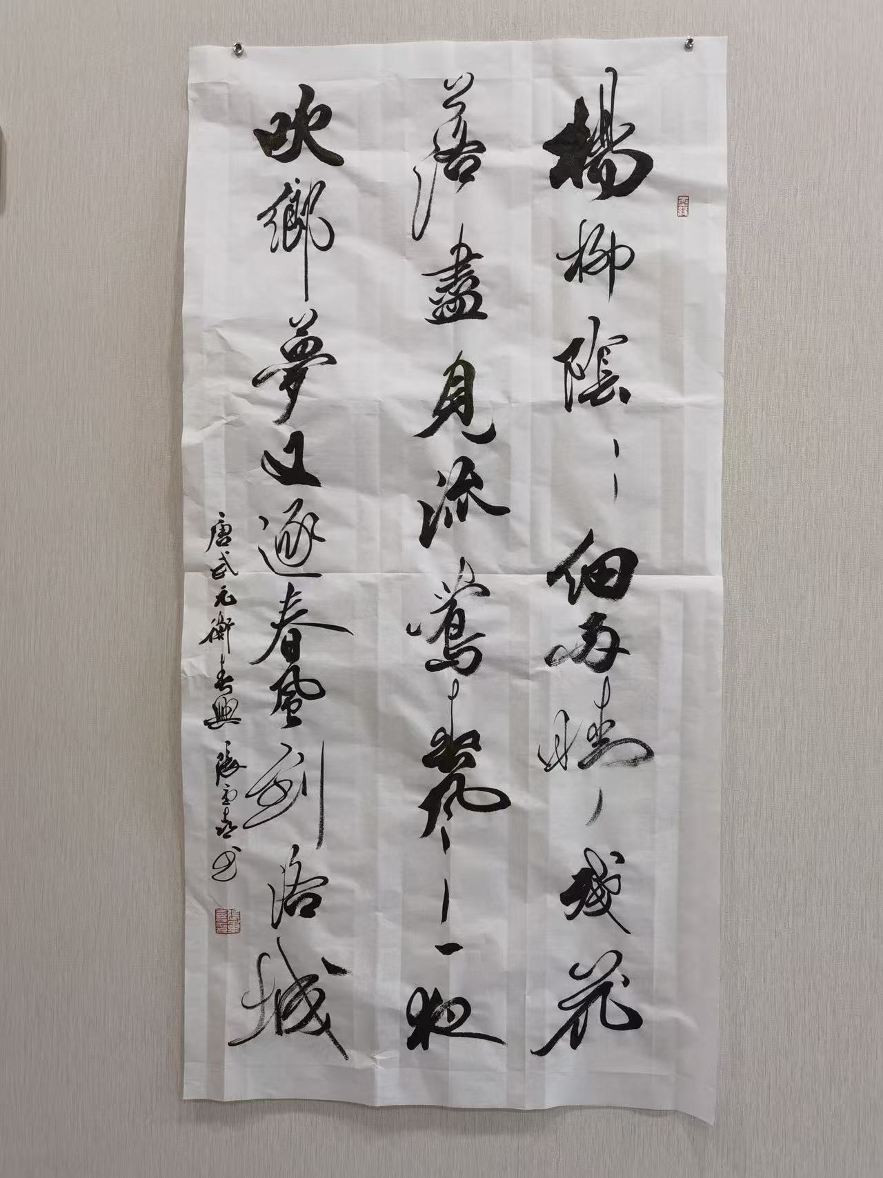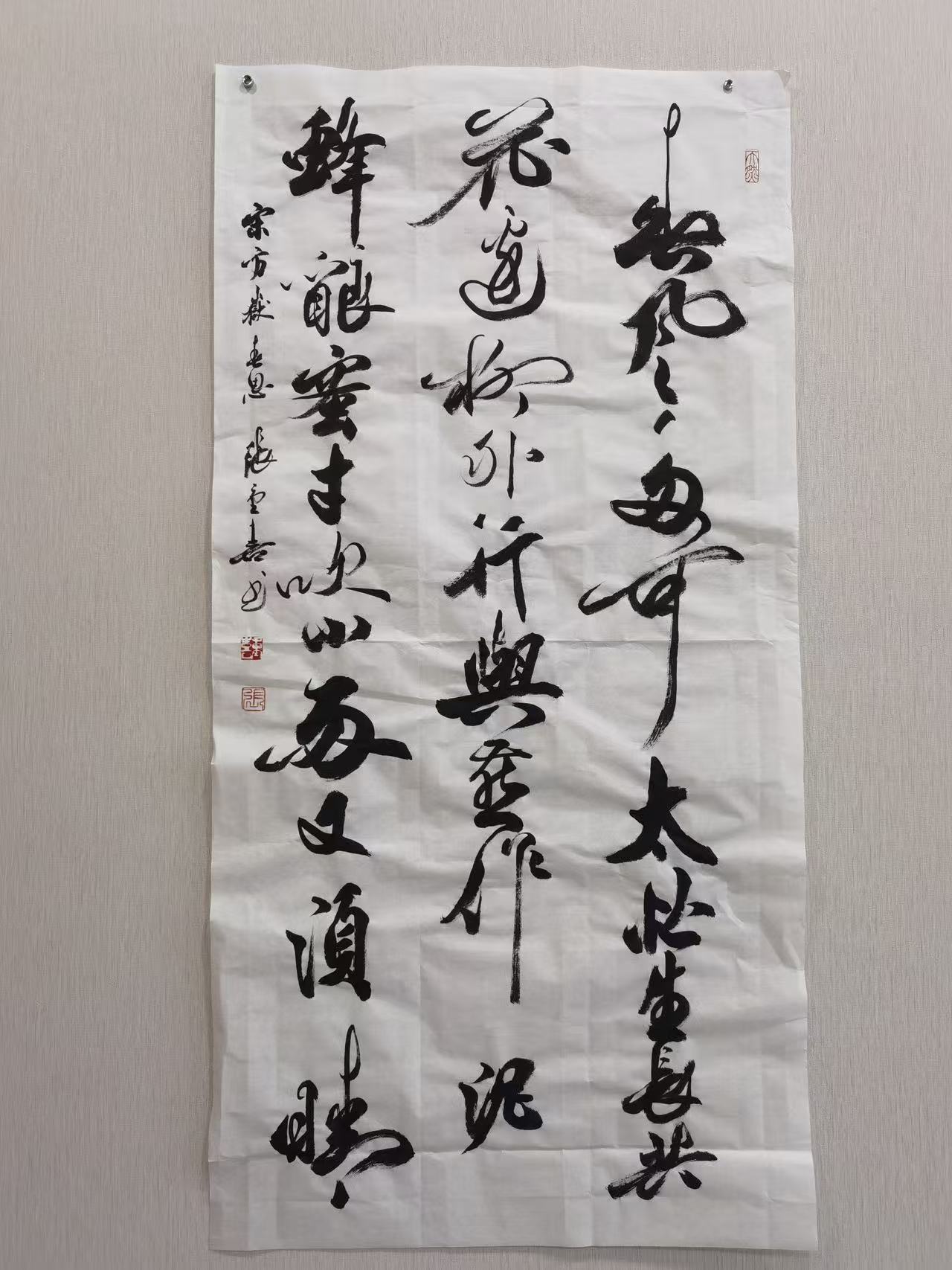 张重喜的草书,并非一味狂放,而是“狂而不乱、放而有矩”,在奔放的笔墨中暗藏法度规范,在自由的结构中坚守传统精髓,实现了“奔放与内敛、自由与规矩”的完美统一。他的草书作品,既保有古典草书的自由精神与磅礴气势,又融入了当代人的情感张力与审美节奏,每一幅作品都是内心激情与艺术理性的平衡表达,让观者在感受笔墨奔放之美的同时,体会到传统草书的神韵与底蕴。