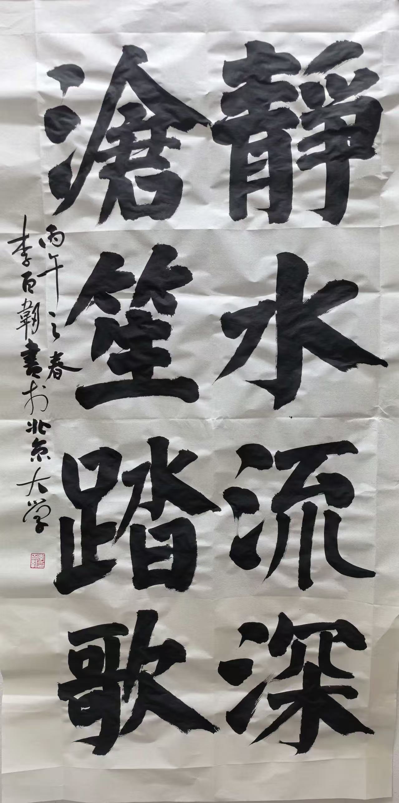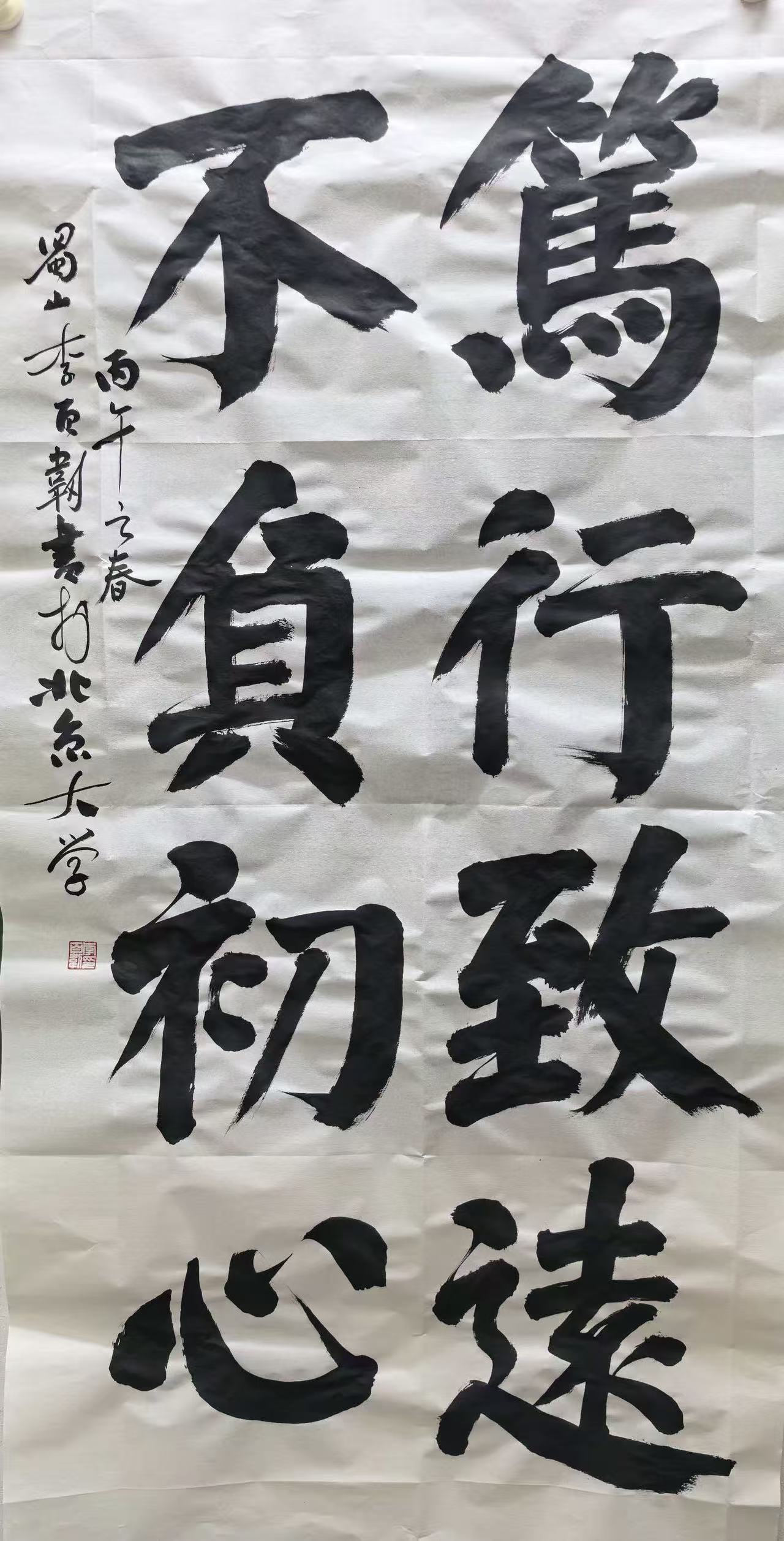 纵观李俸春的书法艺术,其风格核心始终围绕“守正、创新、人文”三大维度。守正,即坚守传统书法的笔法、结体、章法精髓,不脱离古法、不背弃文脉;创新,即融入个人审美与时代气质,突破传统局限,赋予作品当代活力;人文,即注重笔墨背后的文化内涵与精神底蕴,以书法承载人文情怀、传递审美价值。其作品“古而不旧、新而不怪”,既传承千年书法文脉,又契合当代审美需求,实现传统与现代的完美统一。