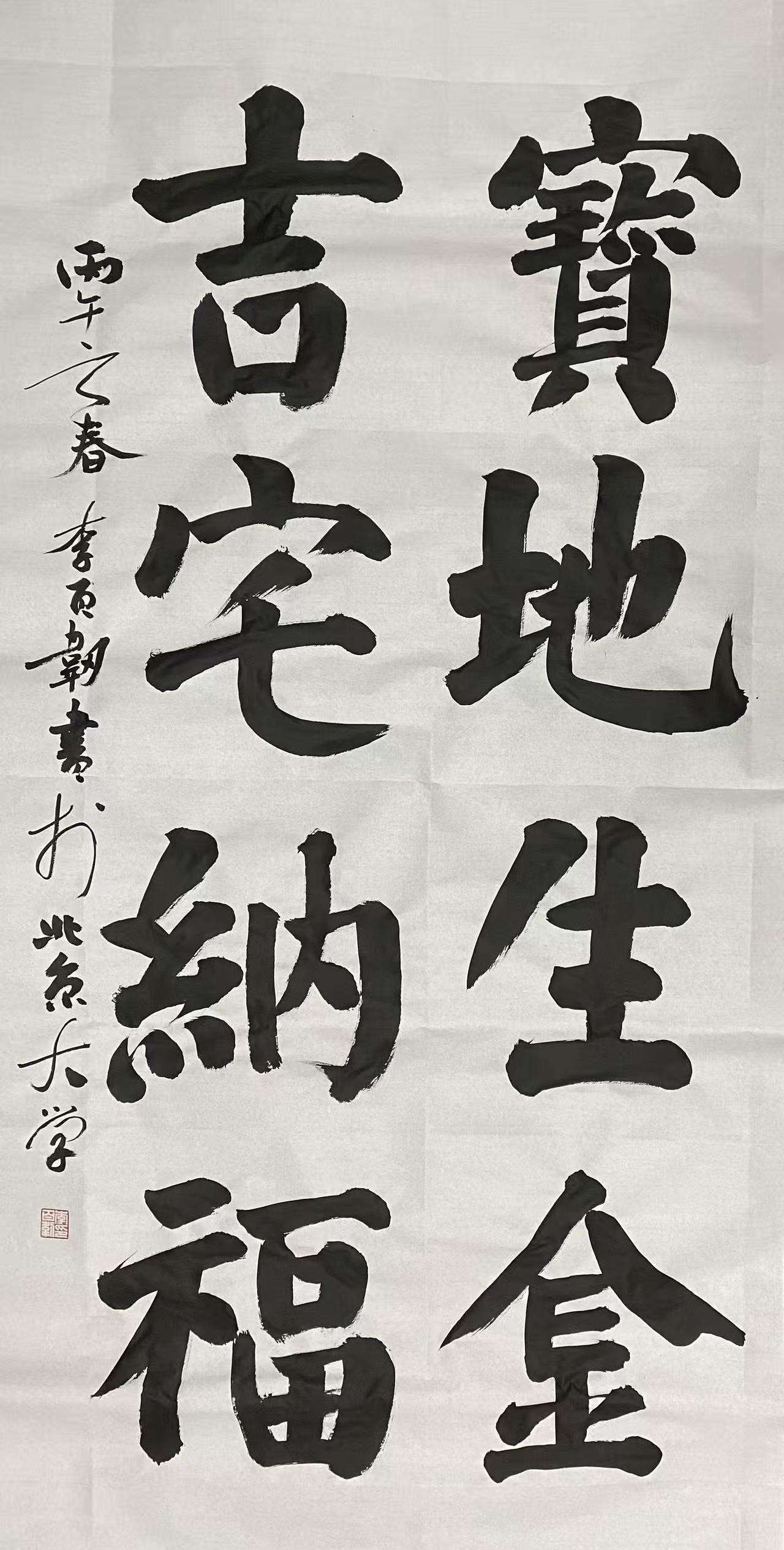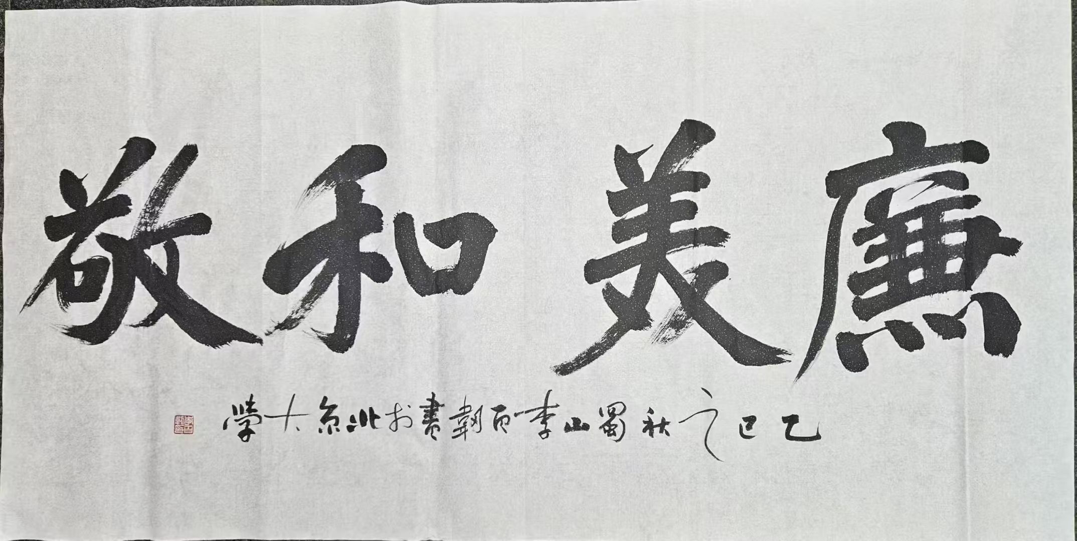 结体严谨,疏密有致:结构遵循对称平衡、重心稳定的原则,注重疏密对比、虚实相生。如“国”字外框紧收、内部笔画匀称留白;“家”字宝盖头宽博覆下、下部紧凑呼应;“道”字走之底流畅舒展、上部笔画错落有致,整体端庄大气、规整和谐,无松散臃肿之态。