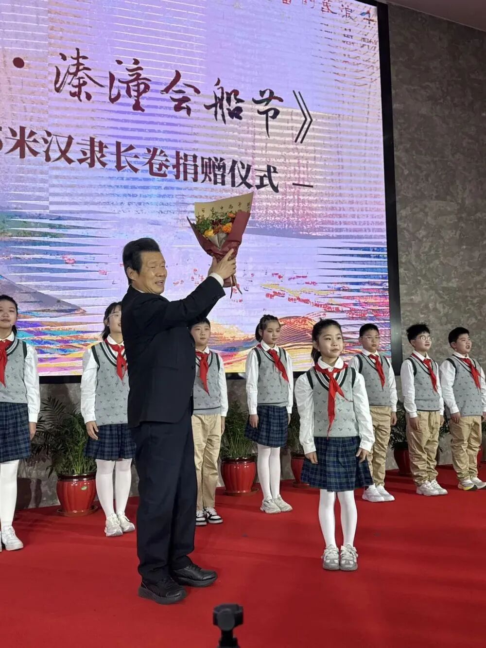 汉隶长卷落姜堰,溱湖会船续千年。4月5日上午,江苏省泰州市姜堰美术馆迎来了一场别具深意的捐赠仪式。著名文化学者、第十一、十二届全国政协委员、第五、六届中国书法家协会副主席言恭达先生,将其精心创作的《水调歌头·溱潼会船节》6.5米汉隶长卷正式捐赠给泰州市姜堰区人民政府,作品将永久存放于姜堰美术馆。
