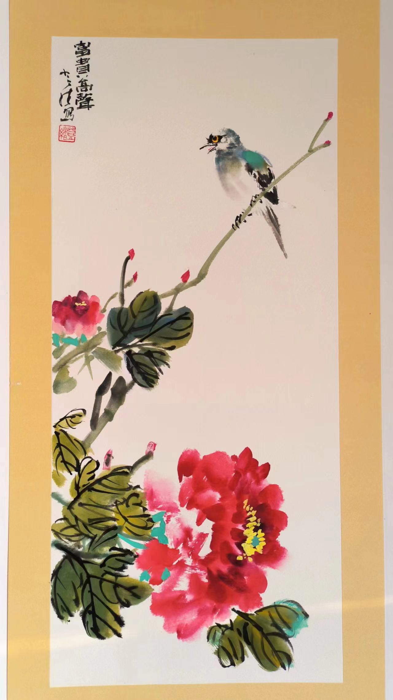 学院教育的核心,是夯实造型、色彩、透视、构图等基础能力,这成为翟登绪“形神兼备”风格的坚实根基。在美院学习期间,他系统研习素描、速写、色彩理论,掌握精准的造型能力——无论是花鸟的形态、山水的结构,还是人物的神态,皆能精准把握,做到“造型准确而不呆板”。传统大写意常重“神”轻“形”,易致物象失真,而翟登绪以学院派造型功底为依托,让笔下荷花、墨竹、寿桃、飞鸟皆形态自然、比例协调、质感真实,再以写意笔墨提炼神韵,实现“以形写神、形神兼备”。色彩方面,他精通色彩构成、色调搭配、冷暖对比等理论,突破传统大写意“重墨轻色”的局限,既能驾驭纯墨的淡雅韵味,又能精准调配淡彩、浓色,让色彩既符合物象特质,又契合意境需求,艳而不俗、淡而有味。