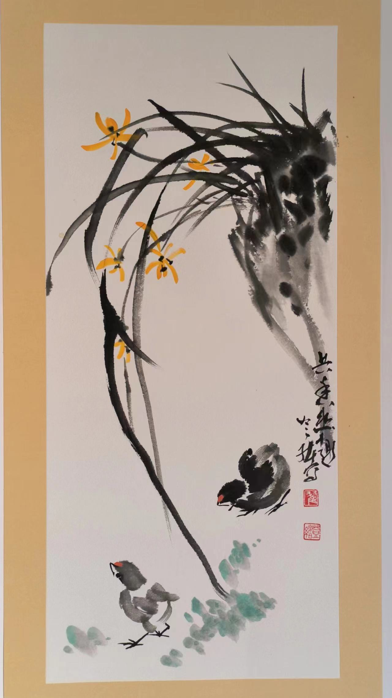 翟登绪性情洒脱豁达、率真自然、不拘小节,这种性情转化为笔墨语言,便是“洒脱生动、气韵流畅”的风格特质。他反对刻意雕琢、墨守成规,创作时随性而发、率性而为,笔墨随情感流转,如书法行草般一气呵成、酣畅淋漓。画竹叶、荷瓣、飞鸟时,以行草笔法挥洒,线条流畅飘逸、灵动多变,或粗或细、或浓或淡、或干或湿,充满节奏韵律;画枝干、山石时,中锋侧锋并用,顿挫有力、洒脱不羁,无拘谨僵硬之态。其创作从不拘泥于固定程式,同一题材每次创作皆有新意,因时、因情、因心境不同而变化,每一幅都是独一无二的“心迹”。这种率性洒脱,并非毫无章法的肆意妄为,而是建立在深厚传统与学院功底之上的“从心所欲不逾矩”,让作品既有法度之严谨,又有性情之鲜活,充满生动气韵与生命活力。