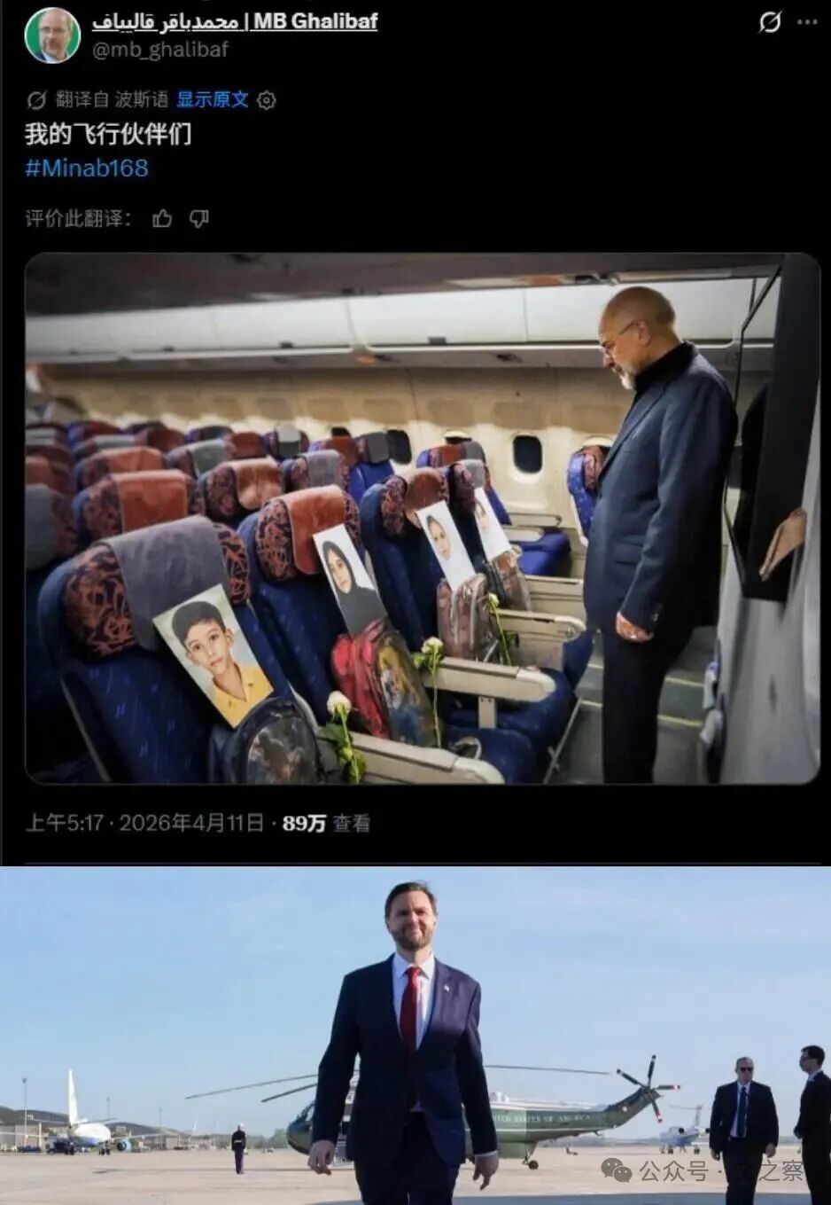 今天是美以两国代表在巴基斯坦首都伊斯兰堡进行两周停火谈判的第一天,美方谈判代表有副总统J.D.万斯,美国总统特使史蒂夫.威特科夫,特朗普女婿、总统高级顾问贾里德.库什纳和美国中央司令部司令布拉德.库帕。伊朗方面的代表是伊朗伊斯兰议会议长默罕默德.巴吉尔.卡里巴夫,伊朗外交部长阿里.阿拉各齐和伊朗中央银行行长阿里.阿克巴尔.哎哈麦迪安及其他领域的专家。