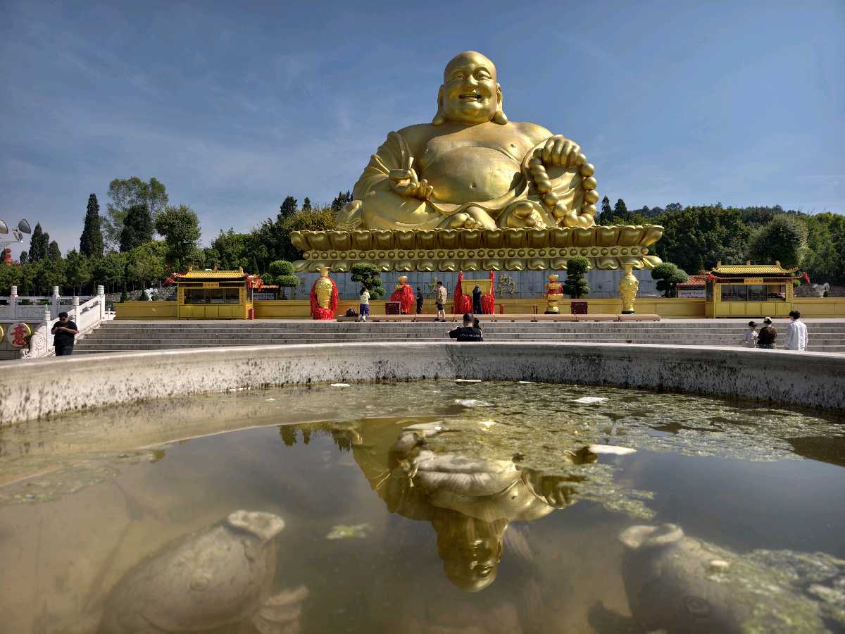 最震撼的当属那座巨大的弥勒佛——金光灿然,笑口常开,坐镇山顶,俯瞰众生。据说这是世界上最大的笑佛。站在佛前,心中烦扰仿佛被他的笑容融化,只余安详。