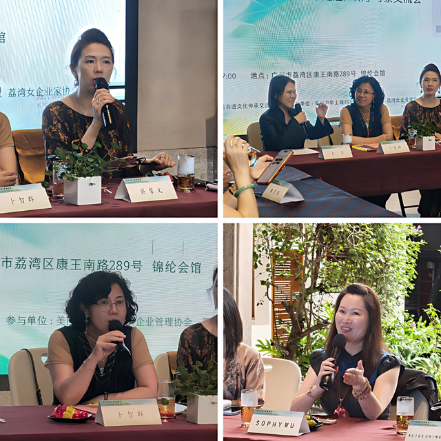 “侨见美荔 花城雅聚——中美非遗文化与女企业家座谈会”在锦纶会馆侨胞之家举办,各界嘉宾齐聚、畅叙交流。荔湾区华林地区侨联主席、锦纶会馆主理人、香云故里董事长王雪在致辞中表示,活动以文化为桥、以艺术为媒、以商为缘,致力打造开放、务实、共享、共赢的交流平台,让文化可体验、合作可落地、友谊可长久。