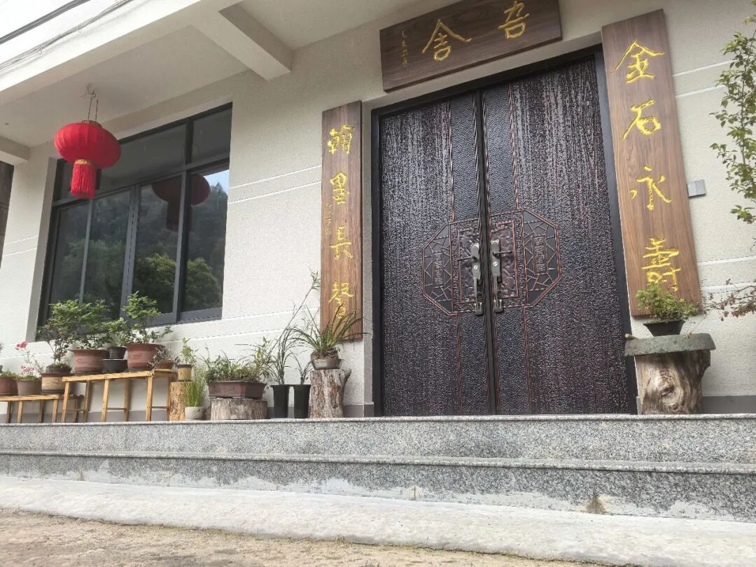 不觉已是午后,阳光斜斜地照进窗棂。我起身告辞,先生送我到门口。阳光正好落在朱门上的对联——“金石永寿,翰墨长馨”,八个字在光里熠熠生辉。先生站在门框里,半边身子在光中,半边在影里,那身影清淡如山,沉静如墨。