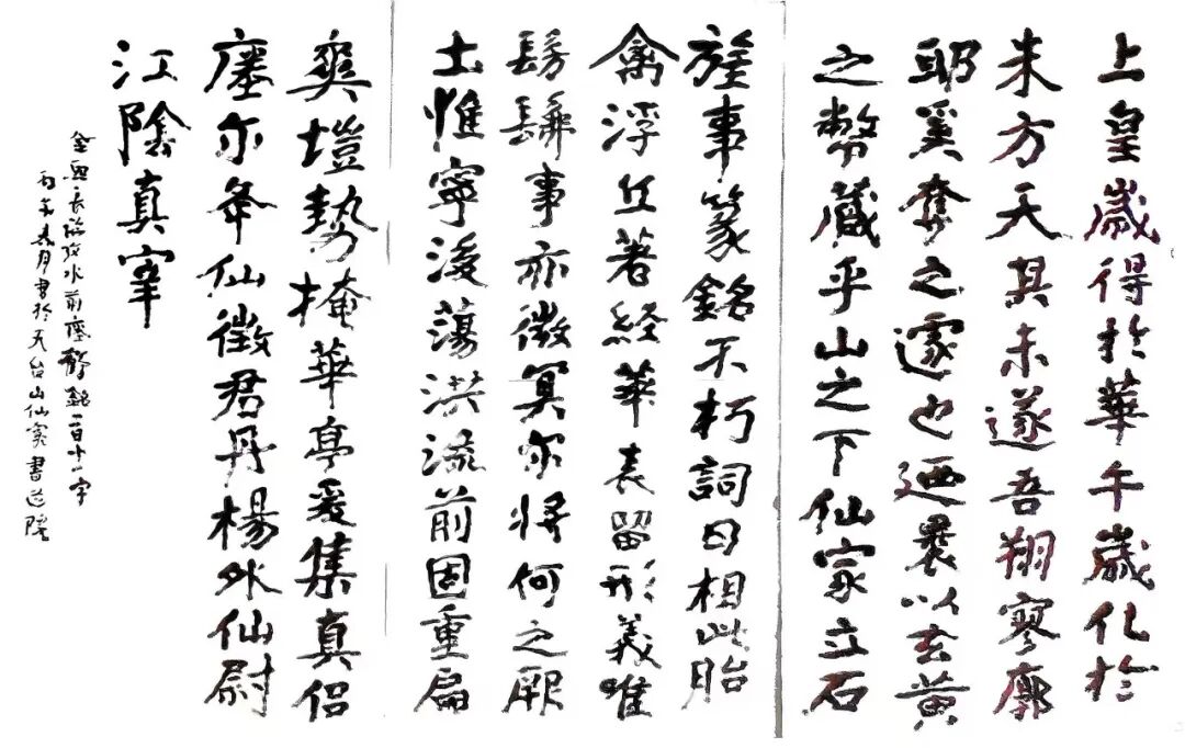 秀溪的水声在身后渐远,天台的群山在眼前铺展。我忽然想起他今早说过的话:“最终要回到人间,以书法为载体,为社会、为人类做贡献。”是啊,翰墨长馨,馨在何处?馨在人心。金石永寿,寿在何处?寿在精神的传承。