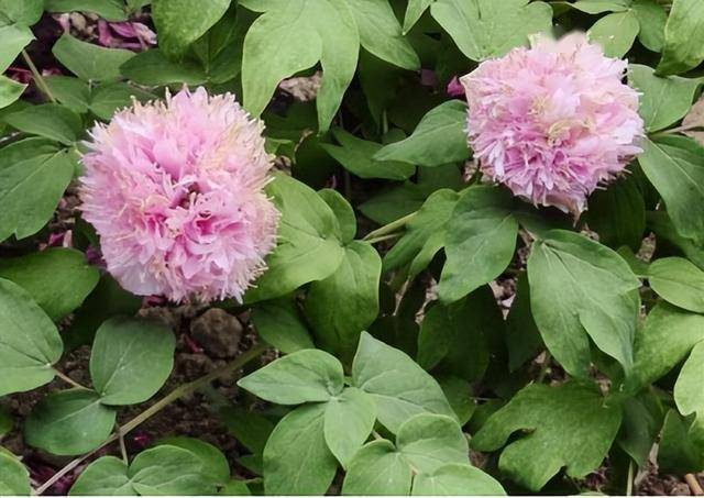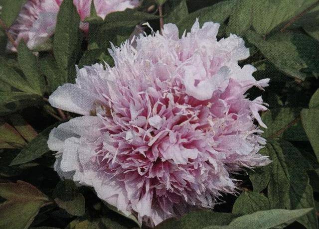 4、‘剪绒’(可称‘红丝贯顶’)。花浅红色,微带紫色,皇冠型。外瓣3—4轮,质硬。内瓣稠密,端部深齿裂,呈剪绒状。花期晚。菏泽赵楼牡丹园1982年育出。