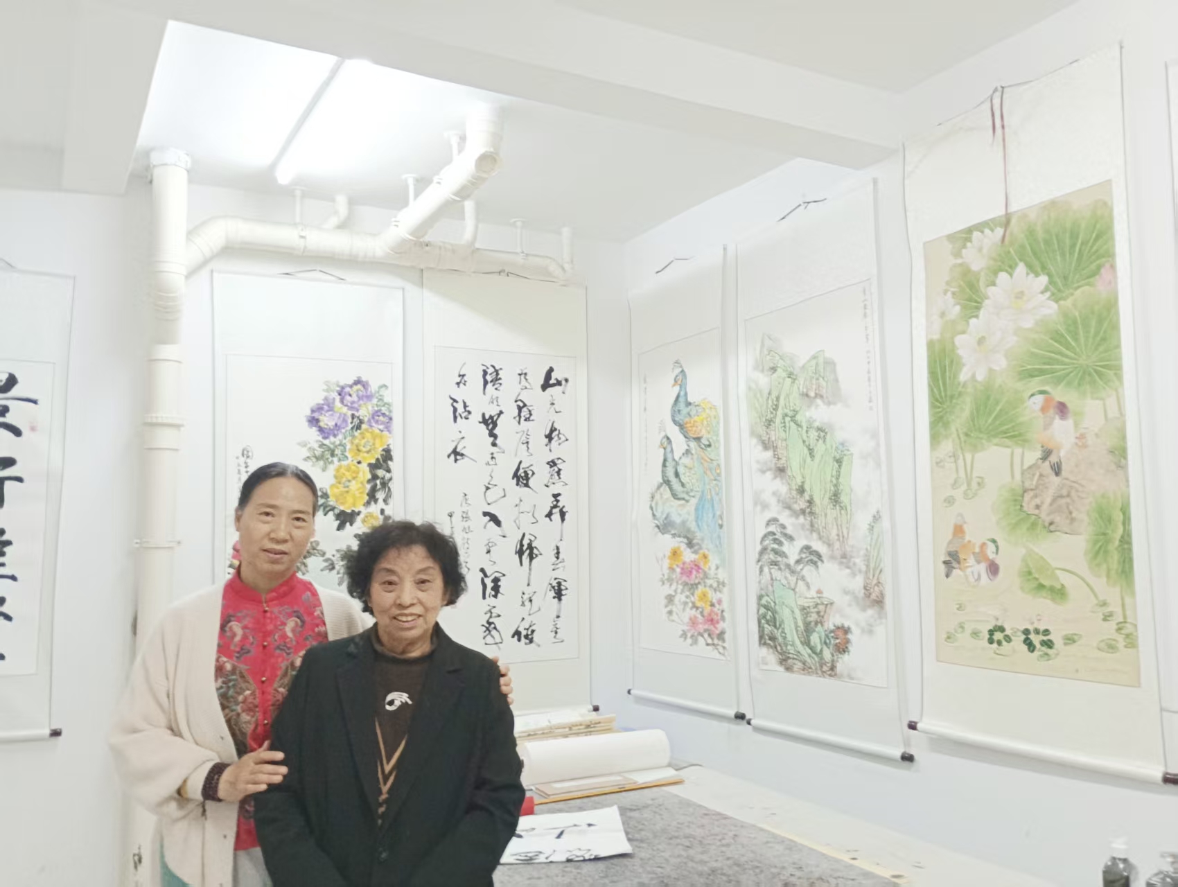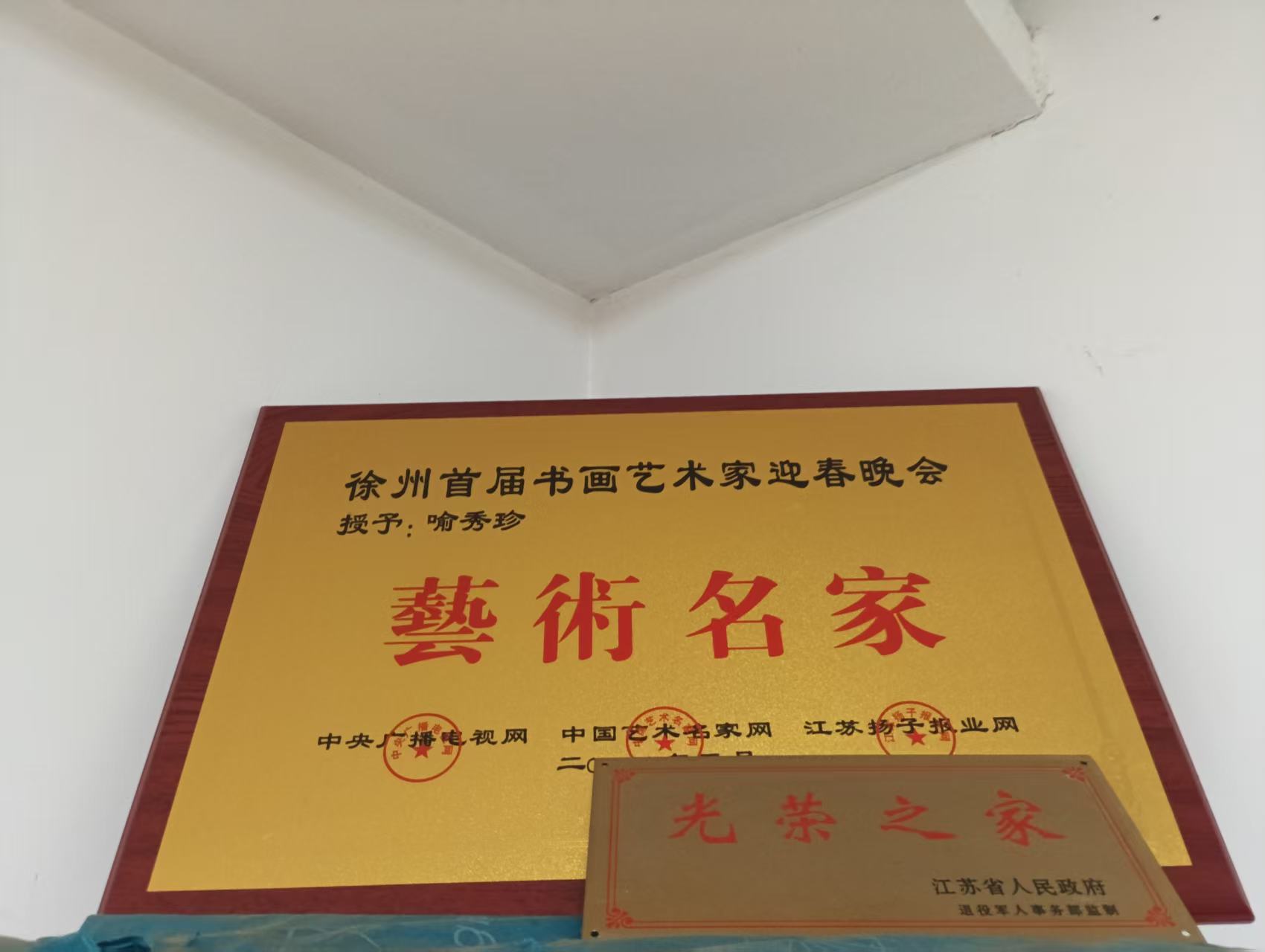 她虽身为喻继高先生的胞妹,却没有一味地模仿,而是在继承家族艺术传统的基础上,不断探索属于自己的艺术风格。她敢于创新,勇于尝试,将传统工笔画的技法与现代审美相结合,赋予作品新的生命力。这种对艺术的执着追求和创新精神,令人钦佩。走进她的家中,那块金光闪闪的“艺术名家”牌匾,是徐州首届书画艺术家迎春晚会给予四姐的至高荣誉,见证着她在传统工笔与书画艺术领域的深厚造诣与不懈坚守。而她展示的工笔习作,笔下的荷塘鸳鸯图清雅灵动、栩栩如生,笔触间的温婉与雅致,一如其本人的品性。