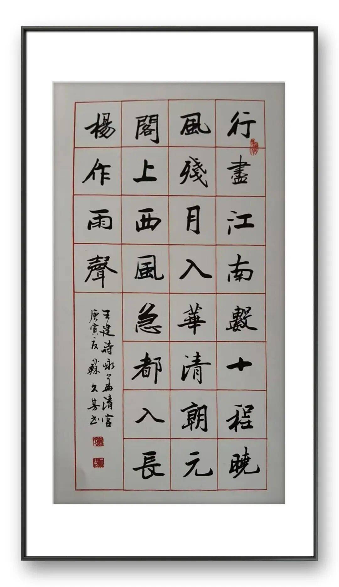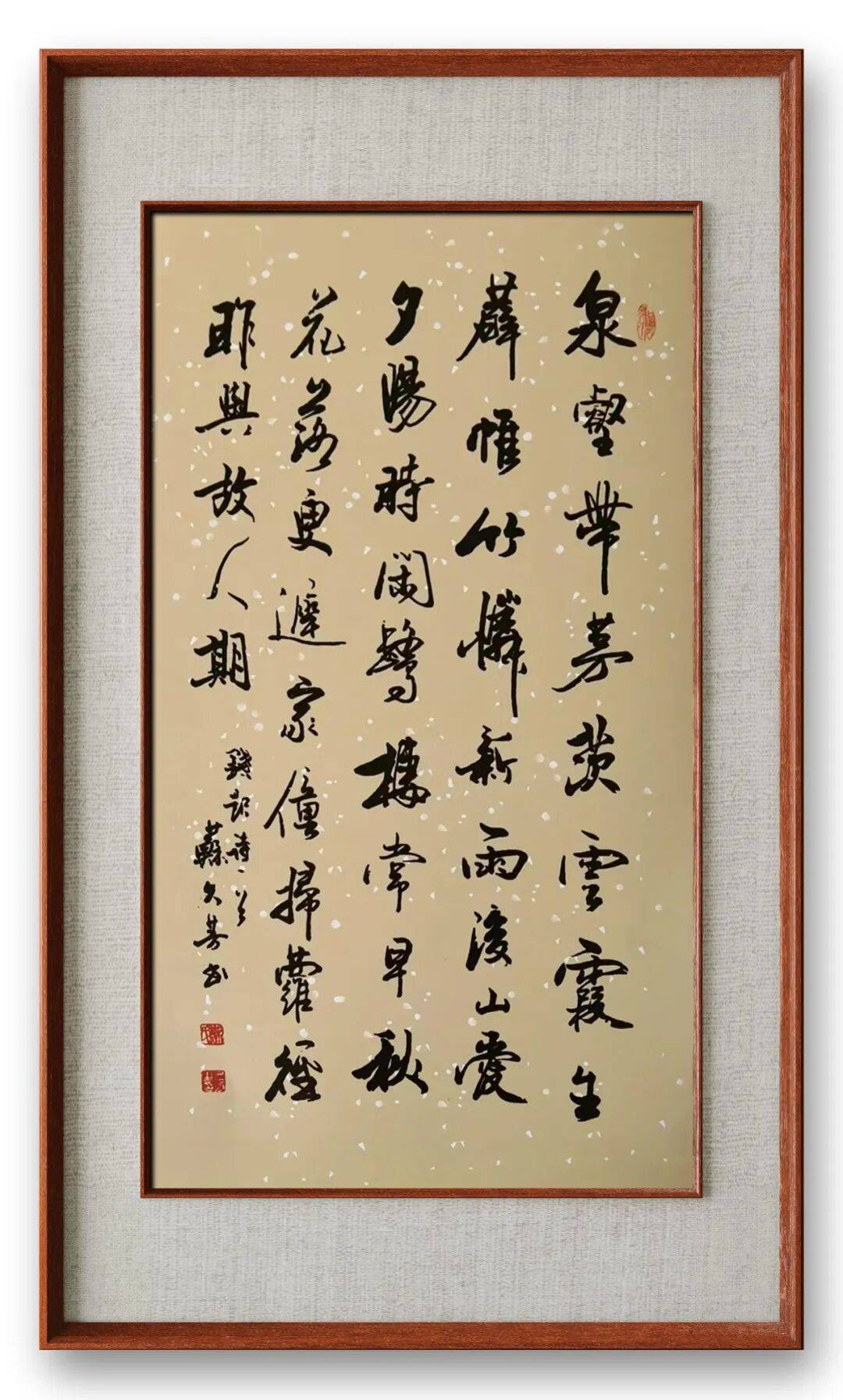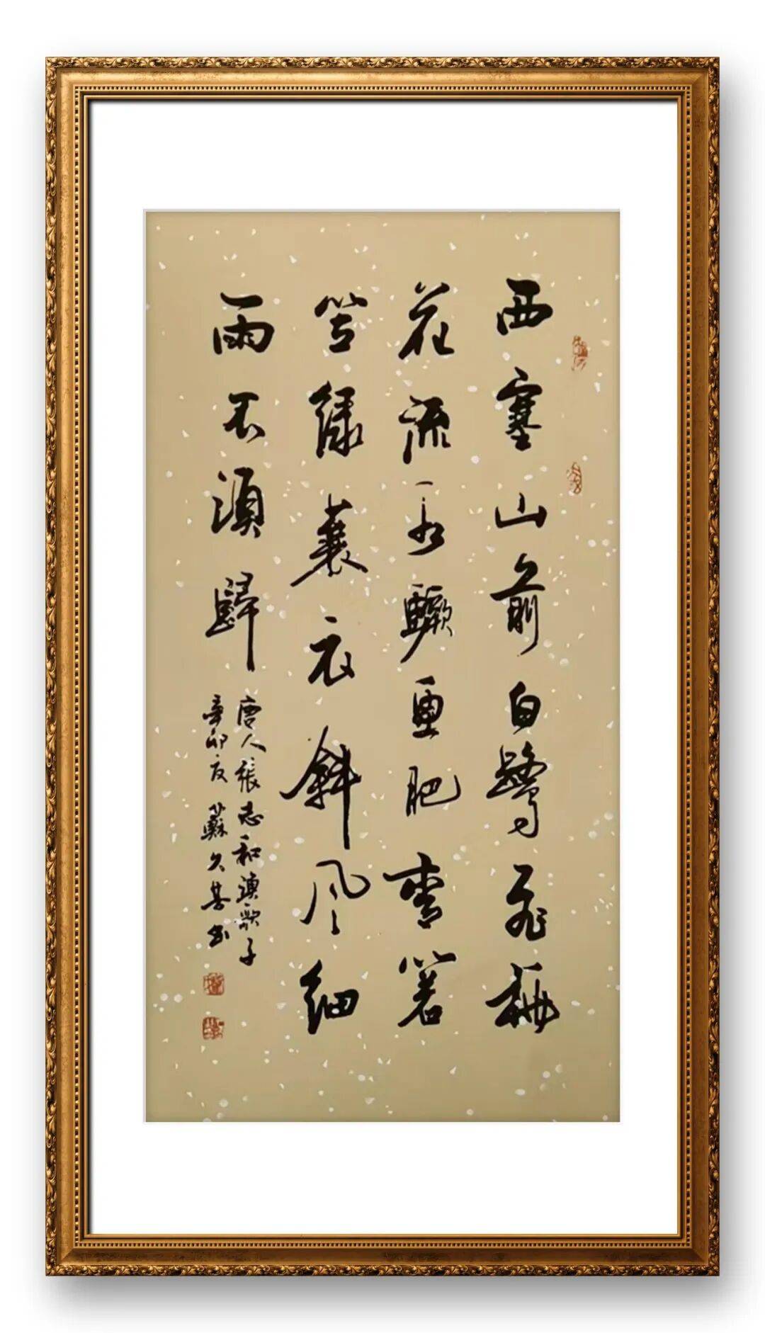 先生的书法,更在 “达意”,以笔墨传情,以书法载道。其作品多书写历代经典诗文,从张志和的渔歌隐逸,到王维的山水禅意,从张祜的金陵渡怀古,到李颀的送别名篇,每一幅作品都是书艺与诗文的完美结合,是情感与笔墨的双向奔赴。书写时,先生以笔墨诠释诗文意境,以心境契合诗中情怀,使书法成为诗文的二次创作,让观者在欣赏书法的同时,重温诗文之美,感受情感之共鸣。
