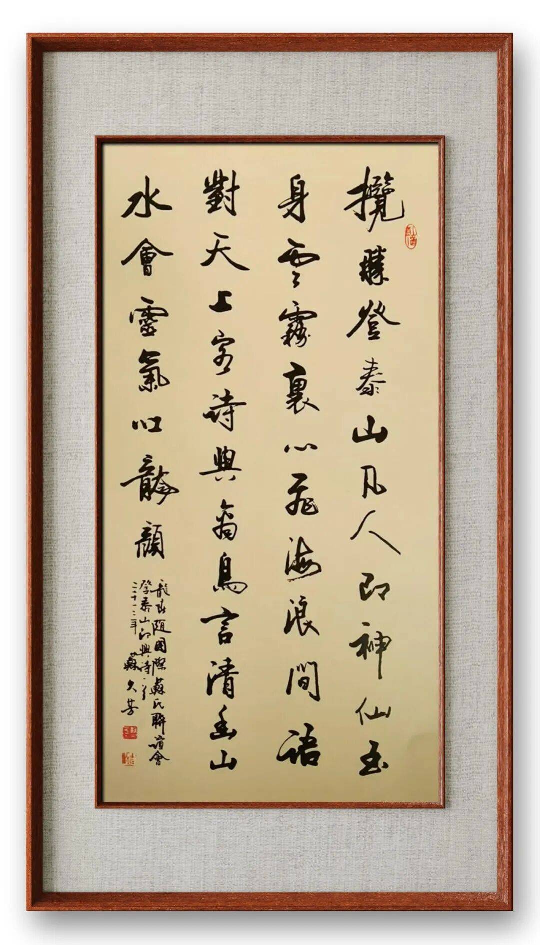 苏久芳先生的书法,是传统与创新的融合,是地域文化与禅意哲思的碰撞,是技艺与心性的统一。其作品,既有传统书法的笔墨韵味,又有当代审美的精神特质;既有齐鲁文化的雄强厚重,又有禅家思想的空灵淡远;既有文人书法的儒雅风流,又有艺术家的个性风骨。先生以笔为犁,以墨为种,在书法的天地里辛勤耕耘数十载,不仅成就了个人的艺术高度,更以书法为载体,传承着中华优秀传统文化,彰显着当代文人的精神担当。
