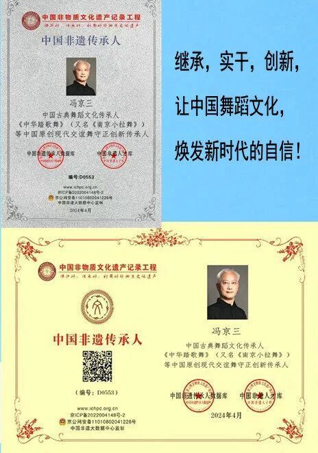冯京三,于1991年,敏锐地察觉到中国舞蹈文化面临的危机,果断地首先树立起中国原创现代交谊舞的旗帜,开创了中国的先锋舞蹈文化事业。并在继承数千年的中国古典“踏歌舞”的基础上,守正创新出《中华踏歌舞》舞种,又名《南京小拉舞》。起死回生,扭转了中国舞蹈文化被灭亡的危机。