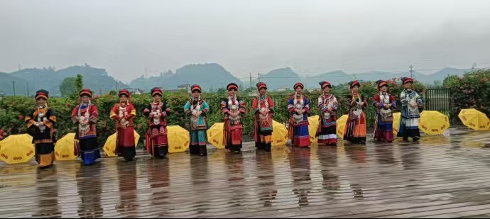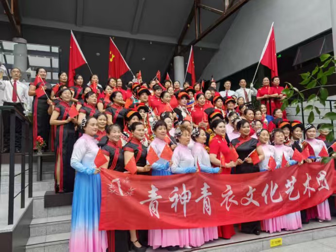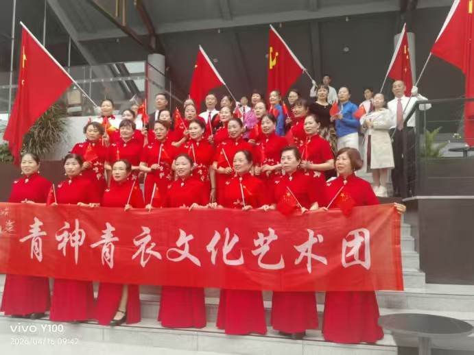 最动人心弦的,是在党旗国旗之下,全体人员齐声高唱《歌唱祖国》。歌声铿锵有力,饱含深情,穿过满园春色,越过岷江河畔,在青山绿水间久久回荡。不同地域、不同民族的姐妹们心手相连,用嘹亮的歌声,齐颂祖国的伟大富强,诉说对祖国的无限热爱。一张张洋溢着幸福与自豪的笑脸,在春日暖阳下绽放,与身后的水墨山水、繁花绿草融为一体,成为汉阳院子里最动人的风景,彰显着各民族守望相助、同心向国的深厚情谊。