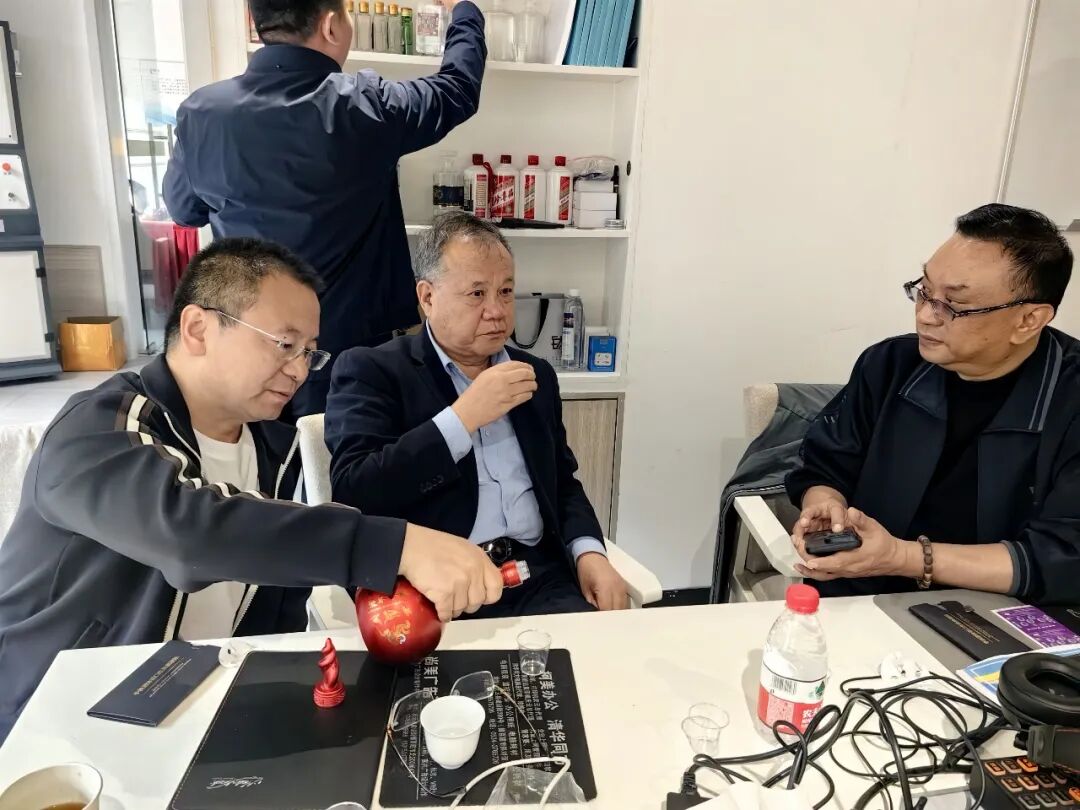 调研期间,渠志鹏董事长全面介绍了企业发展历程、核心技术优势、市场布局及多项科技专利成果。为直观展示技术实力,现场特别选用陕西名酒“华山论剑10年”进行技术验证,通过微质子物理质换技术,成功实现同一款酒呈现酸、甜、苦、辣几种不同风味的感官体验,令考察团成员耳目一新、赞叹不已。