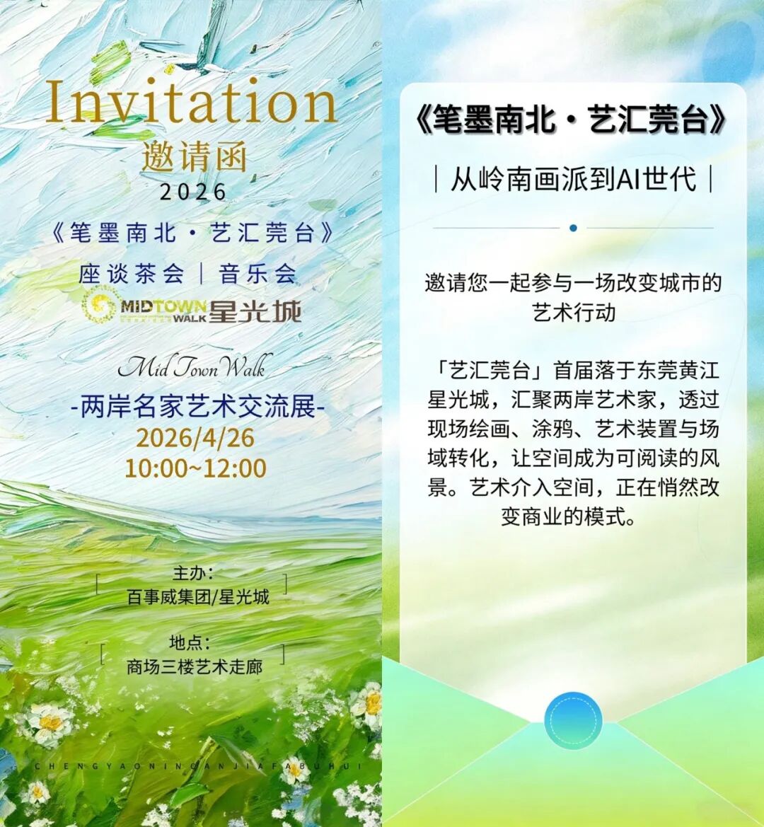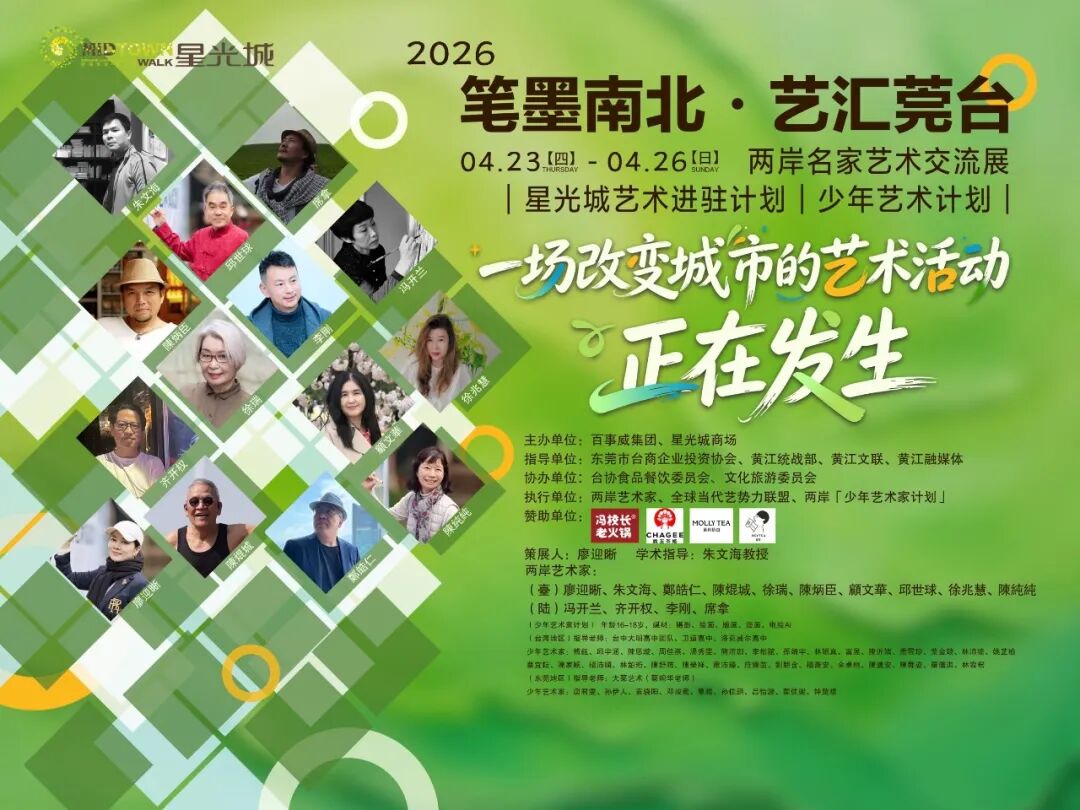 首站落于东莞黄江星光城——一座承载人流与生活节奏的城市场域。十四位两岸艺术家首度联手,将艺术能量注入商业空间,启动一场关于「商场即美术馆」的实验与转化。