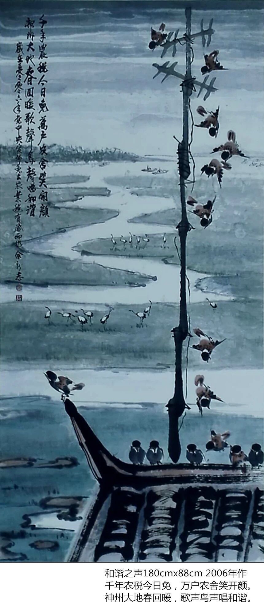 余新志的花鸟画同样令人赞叹不已。他运用细腻的笔触和生动的色彩,将花鸟的形态与神态描绘得栩栩如生。在他的作品中,花鸟仿佛具有了生命力和情感,它们或翩翩起舞、或低声吟唱、或静静伫立,展现出一种和谐美好的生态景象。余新志的花鸟画不仅注重形态的描绘,更注重生命力的表现。他通过细腻的笔触和生动的色彩,让画面充满了生机与活力。同时,他的花鸟画还传递了一种自然观与生态意识。他通过花鸟的描绘,呼吁人们要尊重自然、保护环境,实现人与自然的和谐共生。这种自然观与生态意识的传递,使得余新志的花鸟画具有了更加广泛的社会意义和价值。