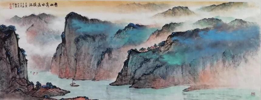雄鸡报晓嘉陵江 248×92cm 2020年余新志又作