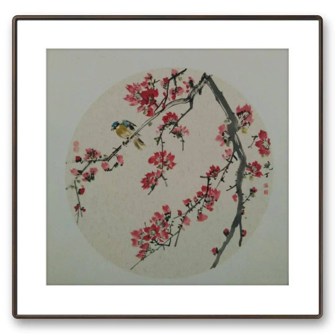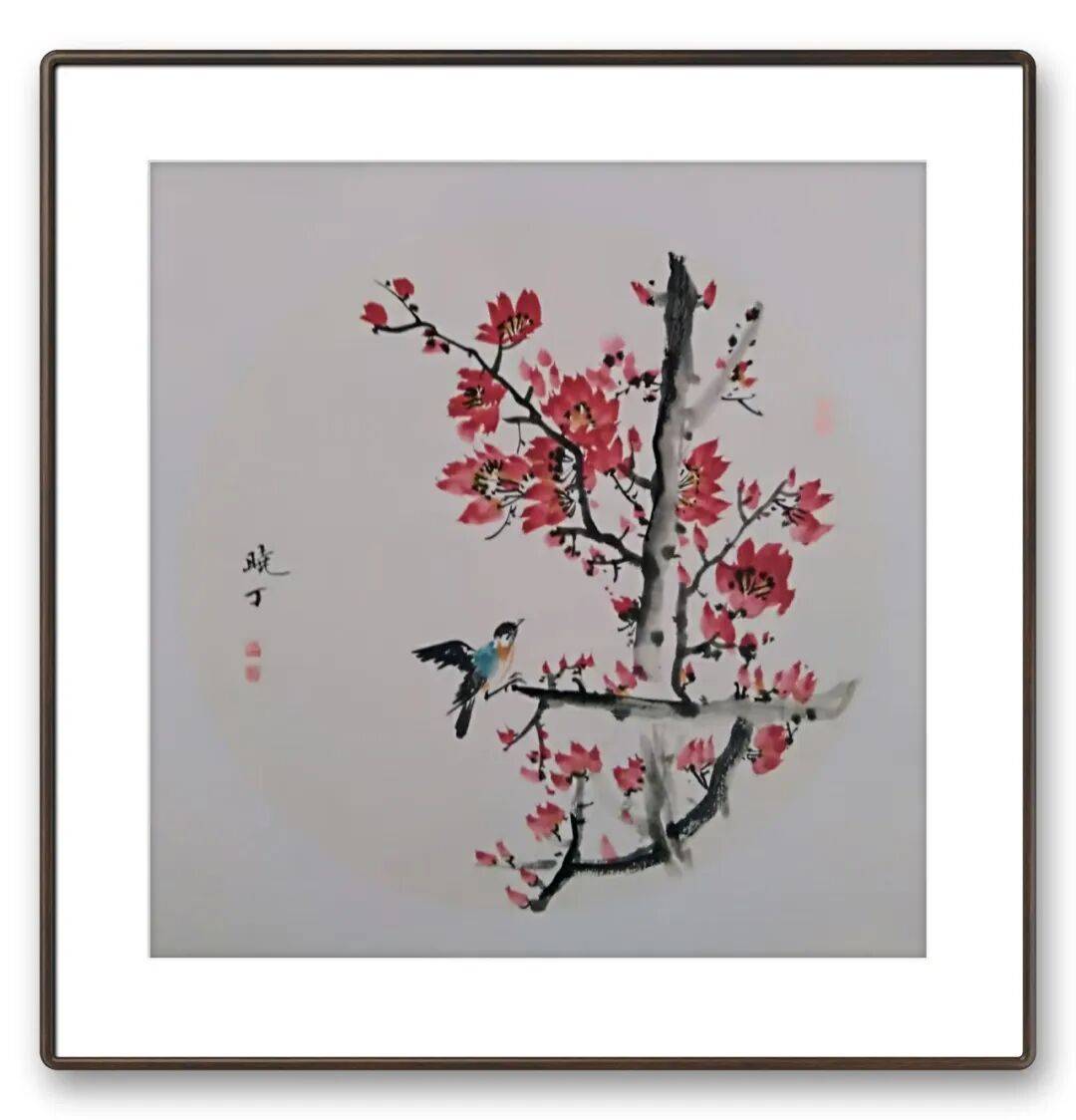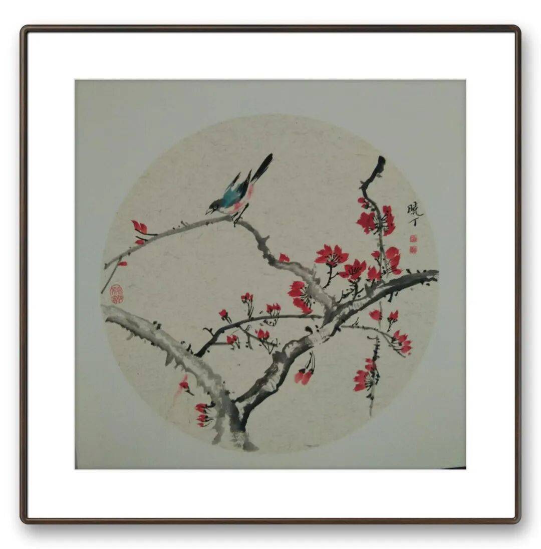 沙老师的花鸟画,笔墨是灵魂所在。作为深耕书法领域的艺术家,他将篆书的沉厚、行书的灵动融入绘画,笔锋起落间尽显功力。绘枝干,以枯笔飞白写其苍劲,线条如古松虬曲,藏着岁月的厚重;画花叶,以湿墨晕染出层次,浓淡干湿交织,似含晨露,水润通透。他不刻意追求形似,却于笔墨流转中捕捉花鸟的神韵,一只栖枝的雀鸟,几笔勾勒便灵动鲜活,翅羽的轻盈、眼神的灵动跃然纸上;一朵盛放的繁花,淡墨点染间尽显清雅,花瓣的舒展、暗香的浮动皆可感知,真正做到“笔简意丰,神形兼备”。