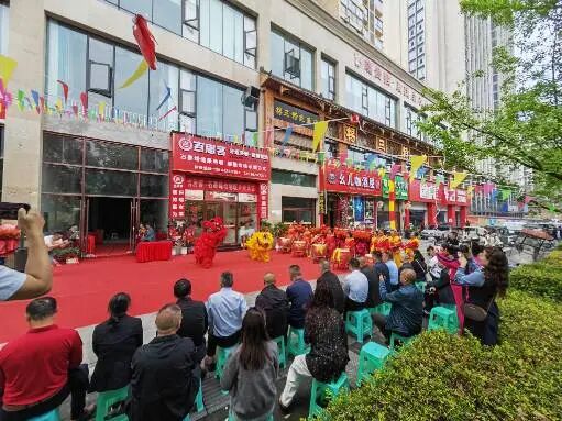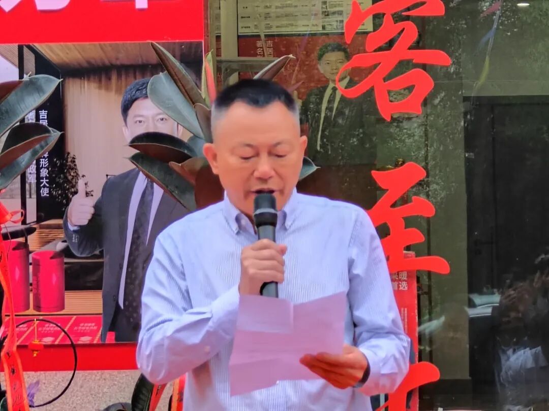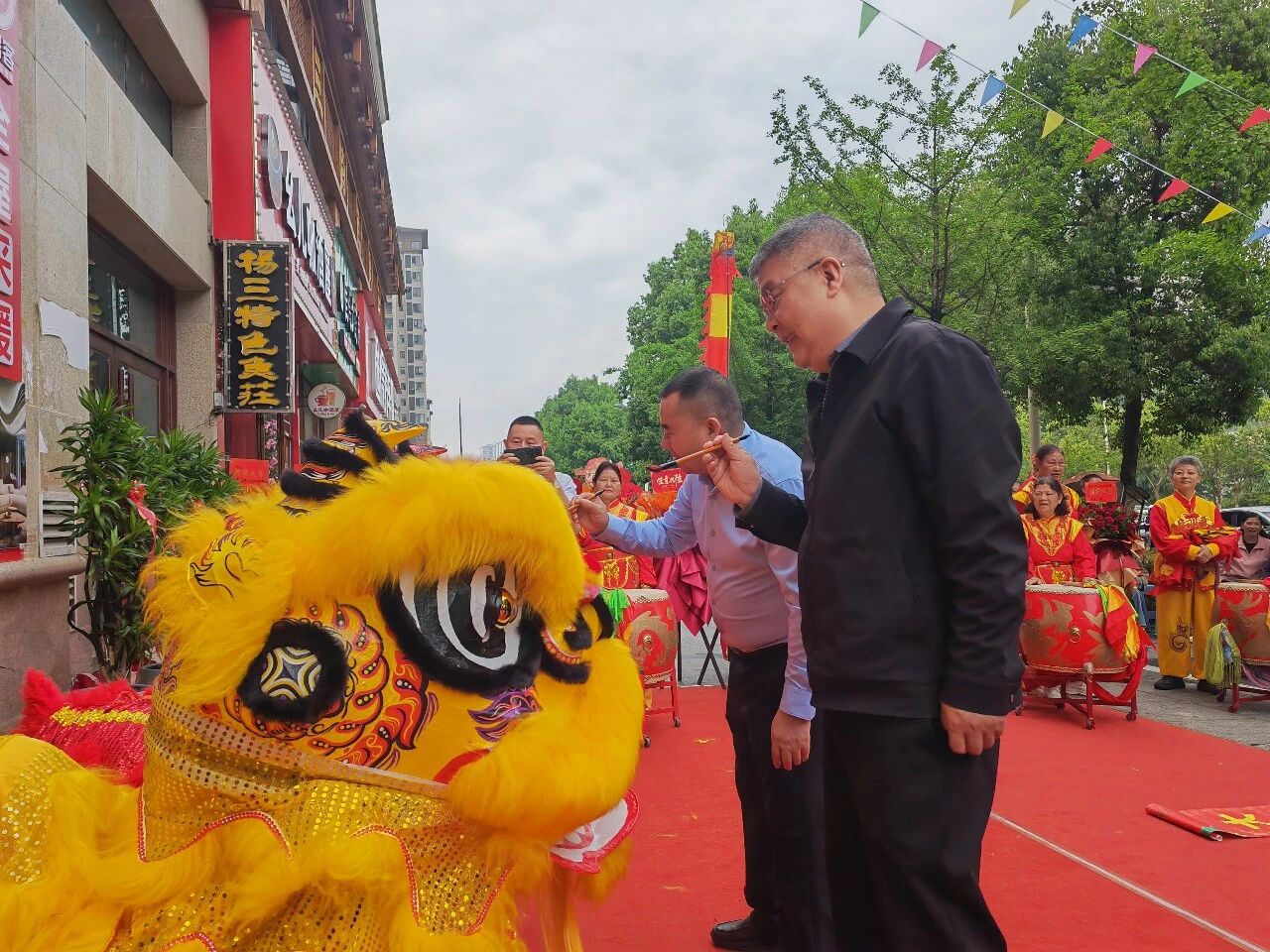 2026年4月20日开业当天上午8时,门店前举行了隆重的庆典仪式。威风锣鼓、舞狮点睛、剪彩环节依次进行,孔令军、李辉刚、王大刚、沈四春、张逸铭五位嘉宾共同剪彩。8时45分,门店正式开门迎客。