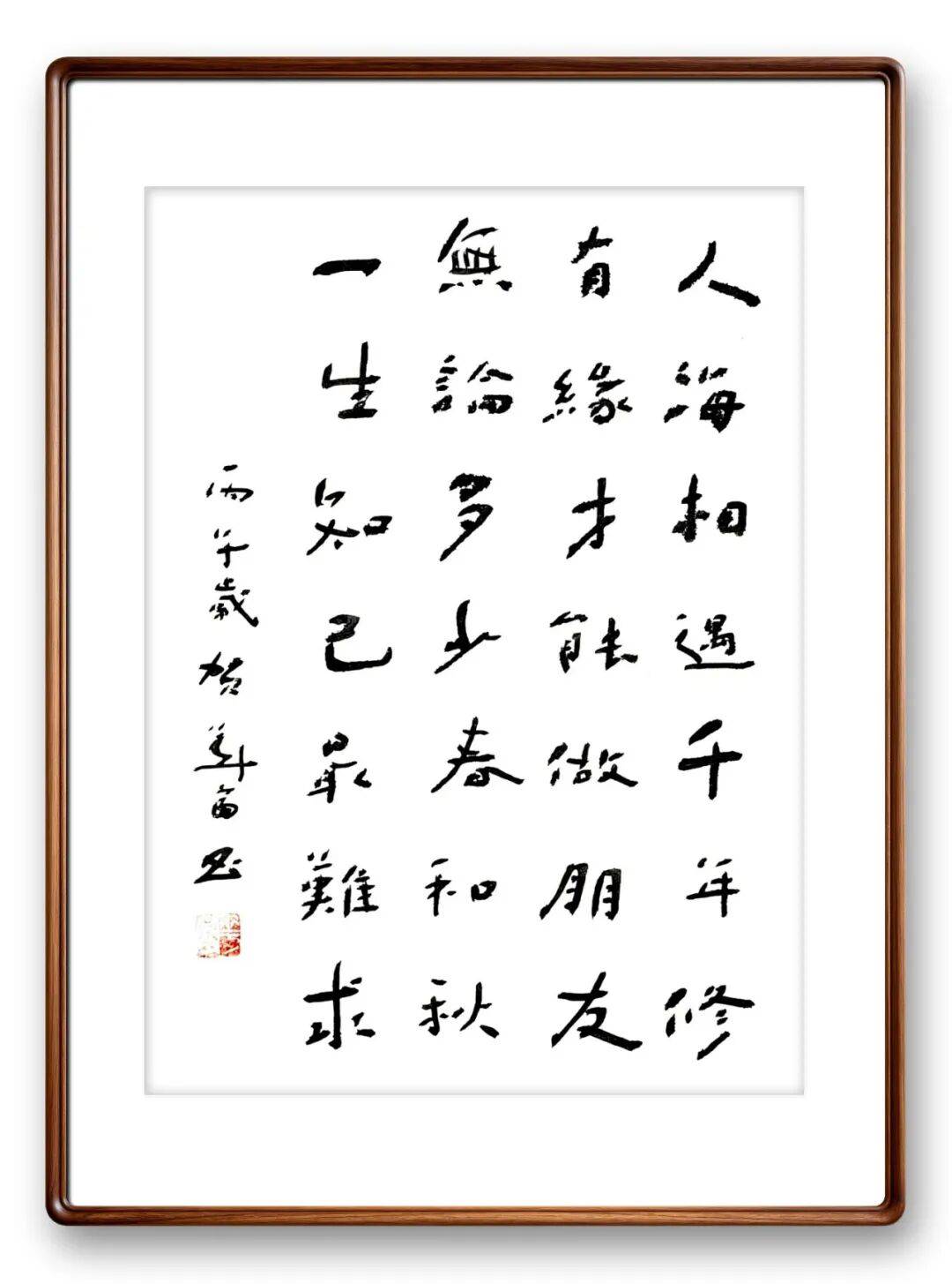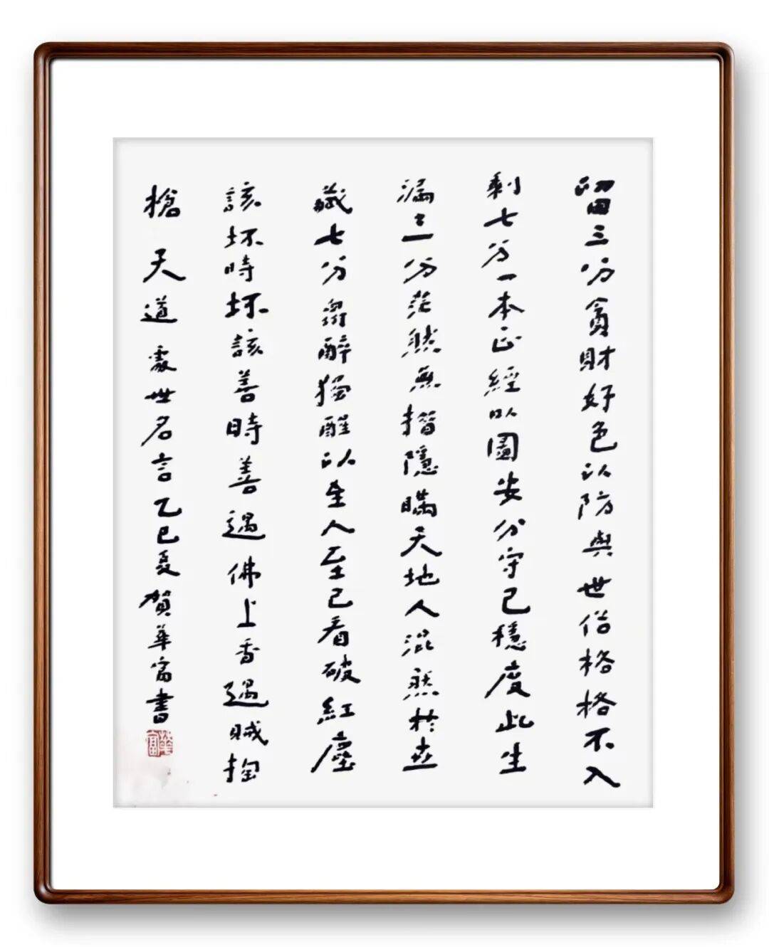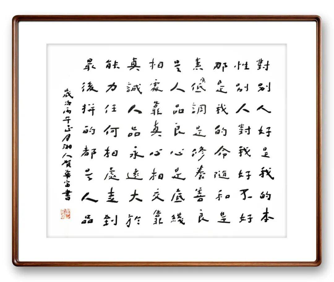 尤为难得的是,贺华富先生的书法作品,不仅有高超的技法,更有深厚的文化内涵与精神气度。他始终坚信,书法是“线的艺术”,更是“心的表达”,线条的粗细、枯润、浓淡变化,不仅体现着笔墨的美感,更承载着书写者的情感与心境。他的作品中,既有湖湘文化的雄浑豪迈,又有文人雅士的温润内敛;既有对传统文脉的坚守与传承,又有对时代精神的诠释与表达。无论是大幅作品的磅礴大气,还是小品佳作的精致灵动,都能让人感受到他对生活的热爱、对文化的敬畏,以及对艺术的不懈追求。正如中国美术家协会理事、原湖南省美协主席朱训德所评价的,贺华富先生“身正,心静,意闲,神宁”,这份心境,也融入了他的笔墨之中,使其作品自带一种灵光与韵味,给人以心灵的启迪与美的享受。