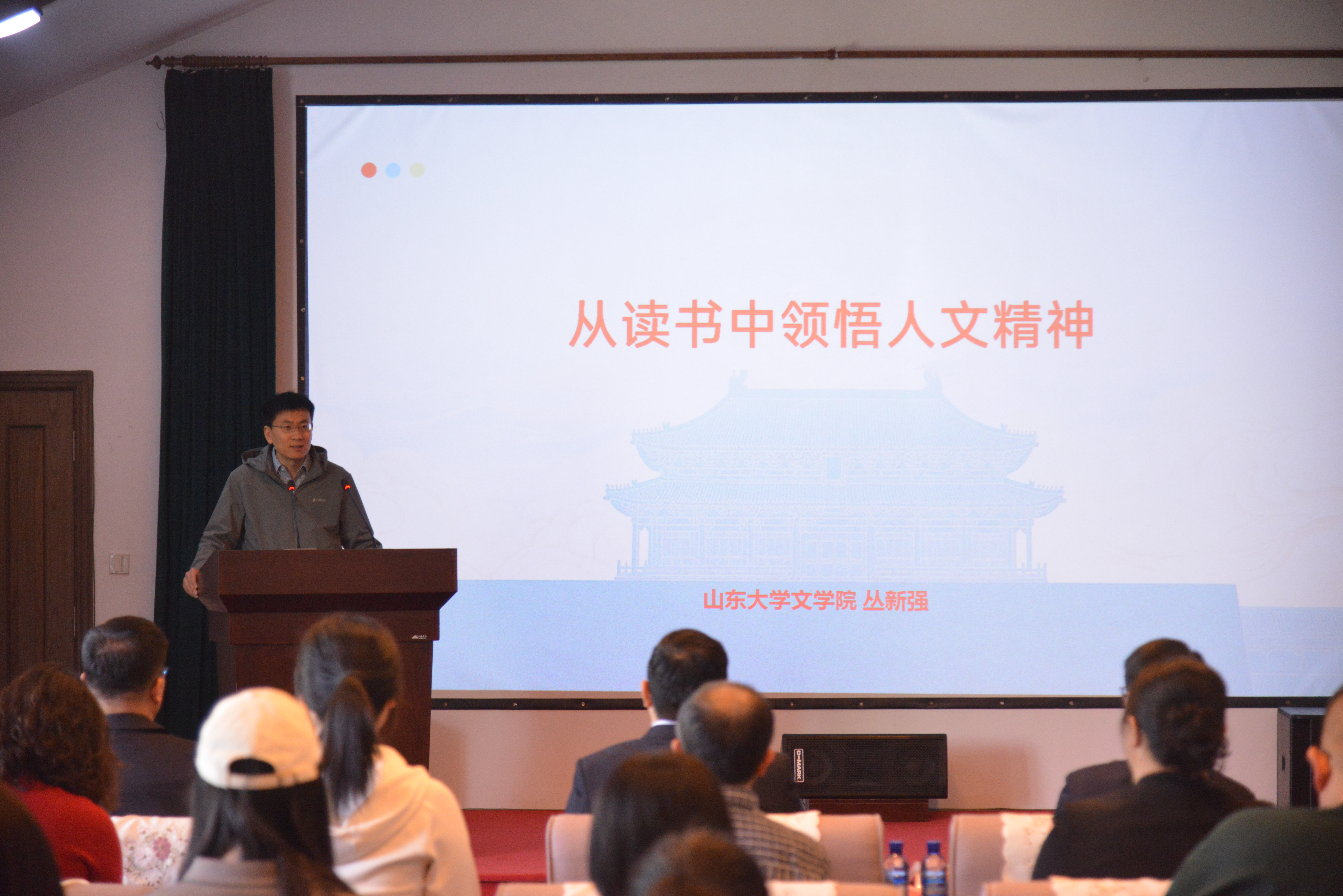 海岱之间,文脉绵长。4月26日,“书香龙口·阅悟人文”万松浦讲堂在万松浦书院开讲。文学博士,山东大学文学院教授、博士生导师,山东省当代文学研究会会长丛新强教授应邀作了题为《从读书中领悟人文精神》的学术讲座。龙口市委宣传部、万松浦书院有关领导,龙口市阅读推广人、烟台南山学院学生、周边社区居民及中小学语文教师等近百人共同参与了这场文化盛宴。
