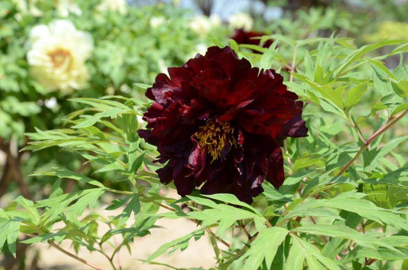 园区工作人员建议我去别的园子看盛开的牡丹,我却不想就这样匆匆离开。既然来了曹州牡丹园,就静下心慢慢走、细细看。走在牡丹花丛之间,枝叶掩映下,还能看到几株开得稍晚的牡丹和芍药。我架起相机,等着合适的光线,记录下残花独有的淡雅姿态。也正是这次不一样的赏花经历,改变了我一直以来对牡丹的固有看法,让我看到了牡丹不常被人发现的真实品性。