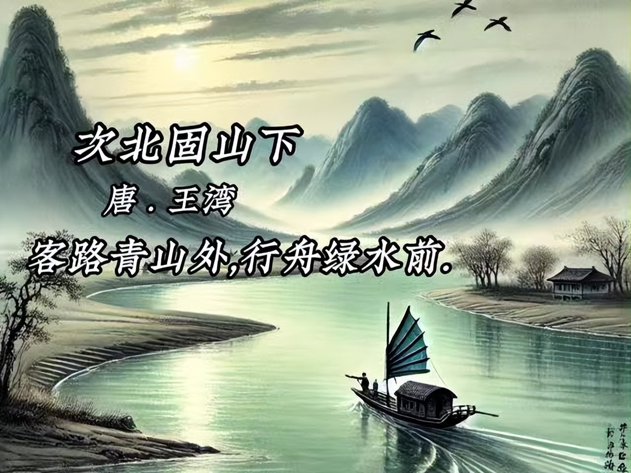 王湾却心态从容,不骄不躁,不争不抢。他安心做好本职差事,闲暇之时四处游历山河。山水风光开阔心胸,旅途见闻滋养才情。开元前期,他一路向南出行,船行长江,停靠北固山下,眼见江天一色、春景浩荡,心中有感而发,一气呵成写下这首千古名篇。这首诗也成为初唐迈向盛唐,文风转变的重要标志。