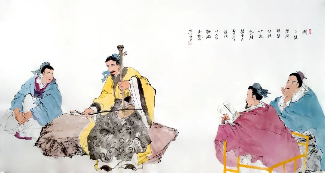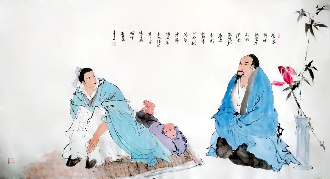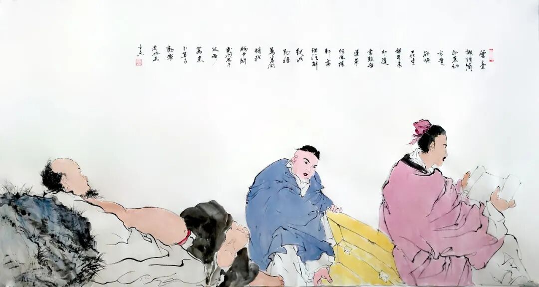 “笔底人间烟火色,墨中风月古人情。”用这句诗来形容李拾磊的人物画,最为贴切。她的人物创作以《苍梧谣》《十六字令》《卜算子》《渔歌子》《采桑子》几大系列为核心,每一幅都如同一阕小令、一段小故事,藏着诗意,也含着温情。她不画孤高避世的虚浮形象,而是将采药劝学、童子伴读、林泉闲谈、观物悟心等充满生活气息的场景入画,于寻常情态中写出人文风骨。人物神情沉静内敛,形态舒展自然,眼神里有岁月,有思量,也有安然,于细微处见心境,于留白处见余韵。笔墨温润含蓄,线条凝练沉稳,既有古典诗词的悠远意境,又有烟火人间的真切温度,让观者驻足画前,仿佛能听见画中低语,读懂一段被时光温柔封存的往事,尽显传统人文艺术的深厚魅力!