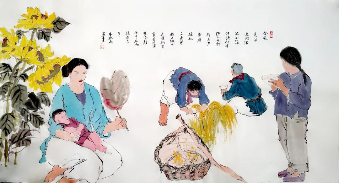 国画《采桑子·五一》(180*97cm)