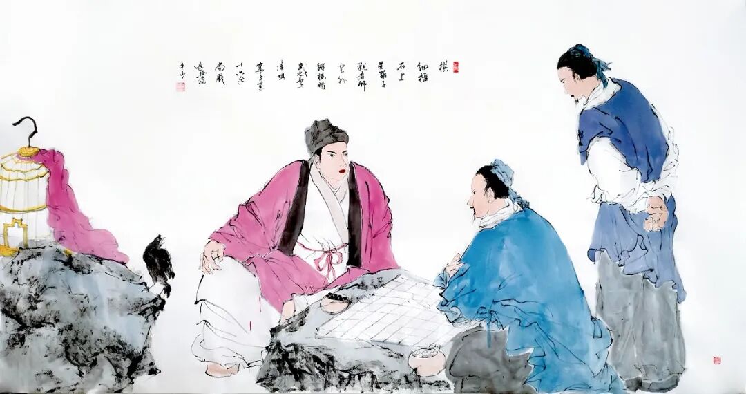 国画《十六字令·局戏》(180*97cm)