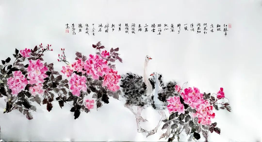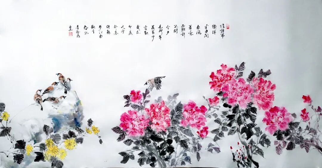 花鸟国画《梦江南·欢言》(180*97cm)
