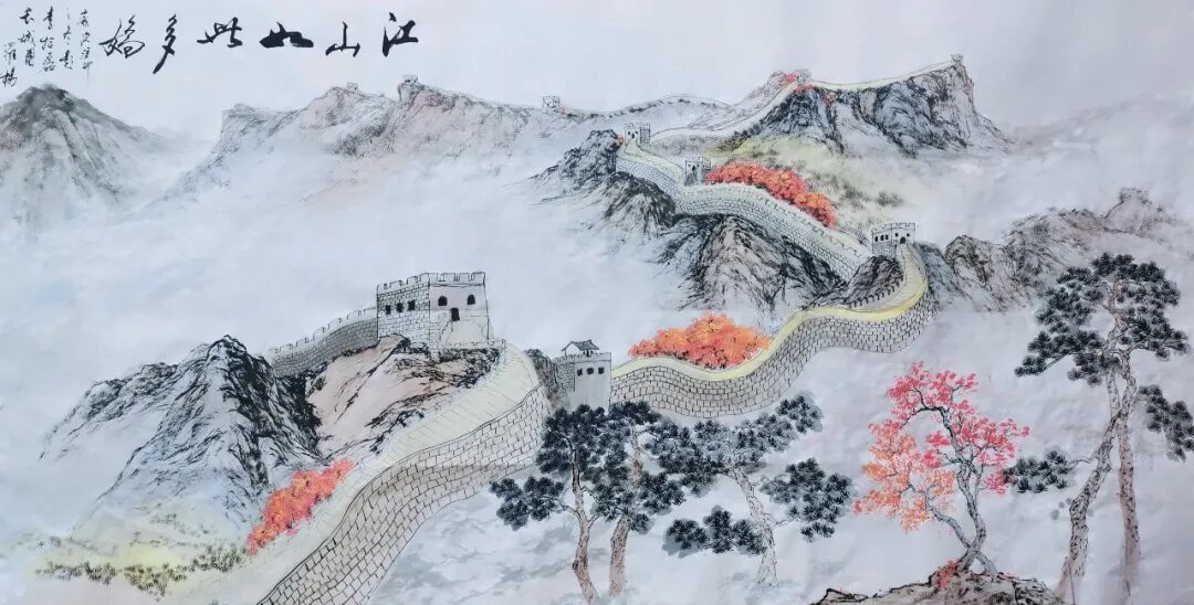 八尺全开山水系列:国画《江山如此多娇之长城图》(248*129cm)
