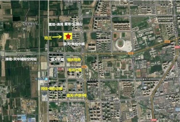 狭路相逢,群雄争霸。本地块属于驻马店高铁商务区,紧邻蓝天英伦小镇项目,北临置地·清苑(即将入市),与恒大悦府(之前506万/亩地王)仅一路之隔。高铁商务区经过几年的发展已初具规模,目前蓝天卢浮9号,恒大名都,东方今典高铁新城,同信缤纷之窗,置地·弘润山小区已经交房入住。